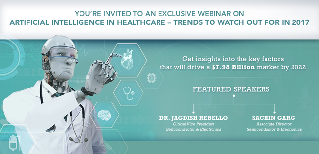 MarketsandMarkets™ is delighted to invite you to an exclusive webinar titled “Artificial Intelligence in Healthcare - Trends to Watch Out for in 2017”, which will be hosted on August 24, 2017 from 11:00 am to 12:00 pm EST. Please join our industry experts – Dr. Jagdish Rebello, Global Vice President and Sachin Garg, Associate Director with our Electronics & Semiconductors Practice as they discuss the key trends of AI as well as the technology outlook that is shaping the evolution of the healthcare industry.