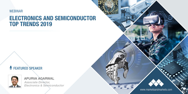 MarketsandMarkets™ is delighted to invite you to an exclusive webinar titled “Electronics and Semiconductors Industries - Top Trends 2019,” which will be hosted on May 23, 2019, from 11:00 am to 12:00 pm EST. Please join our industry expert Apurva Agarwal, Associate Director — as he will discuss the upcoming trends in semiconductor value chain, and touch upon what is enabling various business organizations to accelerate and align their corporate vision and business goals.