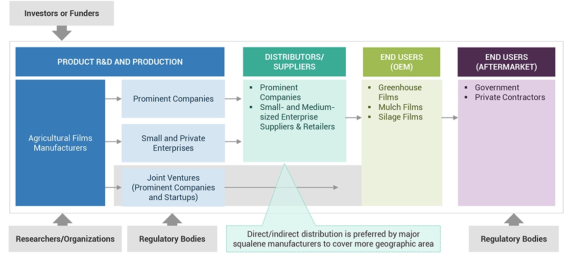 The agricultural films market comprises several stakeholders, such as raw material suppliers, end-product manufacturers, and regulatory organizations in the supply chain. The demand side of this market is characterized by greenhouse films, mulch films, and silage films. The supply side is characterized by advancements in technology and diverse application industries. Various primary sources from both the supply and demand sides of the market were interviewed to obtain qualitative and quantitative information.