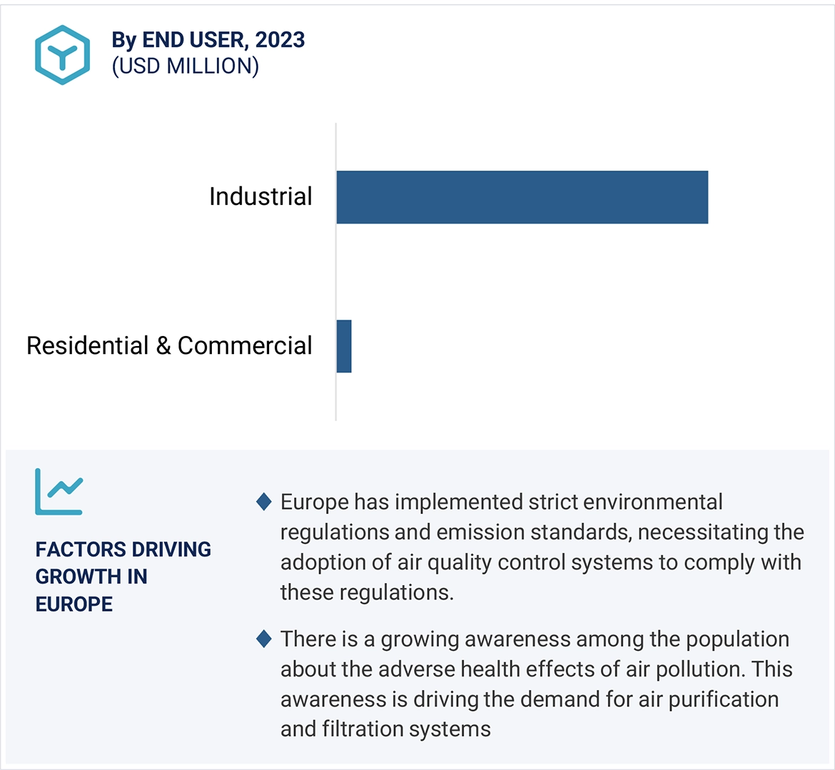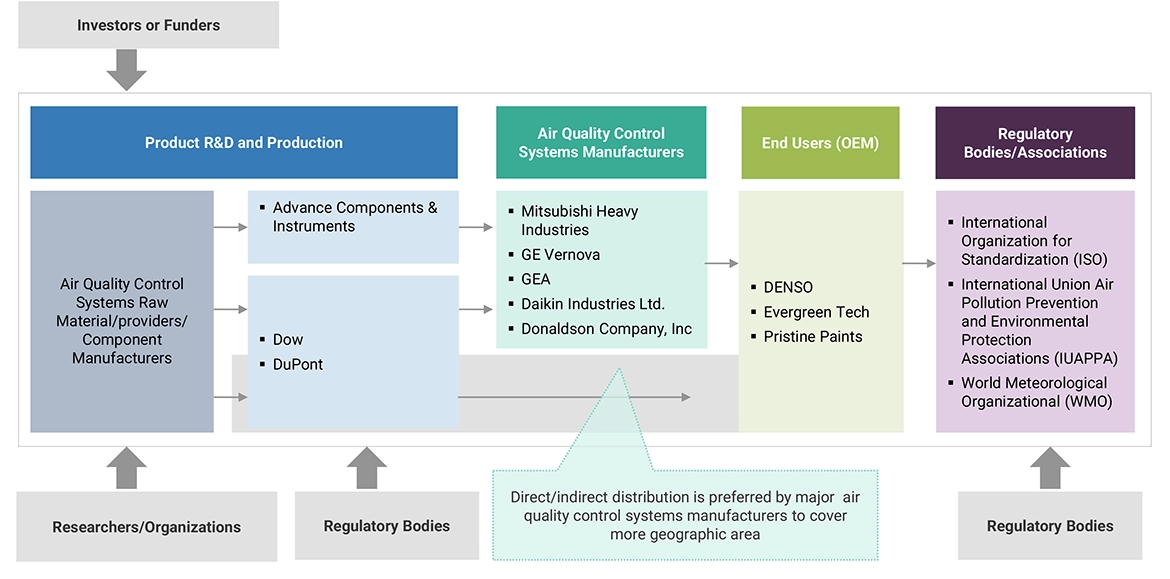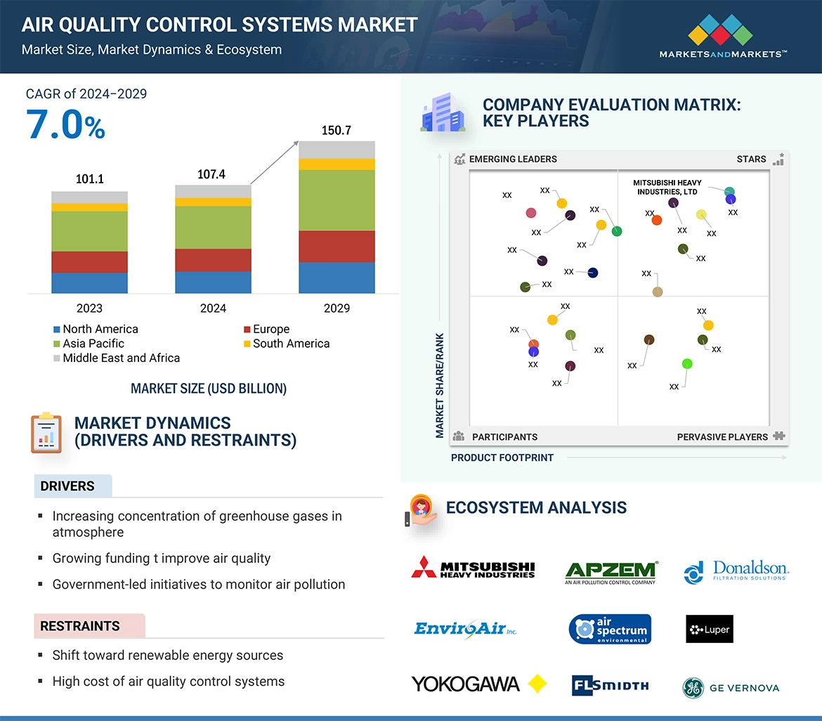 The air quality control systems market refers to the sector encompassing the production, distribution, and utilization of technologies and solutions aimed at controlling, improving and maintaining the quality of air in various environments. This market includes a wide range of products and services such as air pollution control devices, emission control systems, air purifiers, ventilation systems, and pollution control equipment utilized in industrial, commercial, and residential industry. It caters to the increasing global concern regarding air pollution, health hazards associated with poor air quality, and regulatory standards aimed at mitigating air pollutants. The market is driven by factors such as urbanization, industrialization, stringent environmental regulations, growing awareness about health impacts of air pollution, and technological advancements in air quality control solutions.