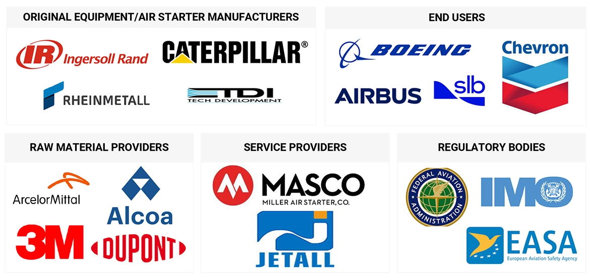 The Air Starters market comprises several stakeholders such as Air Starter manufacturers, manufacturers of subcomponents of Air starter, manufacturing technology providers, and distributors in the supply chain. The demand side of this market is characterized by the increasing oil & gas exploration activities, growing fleet of commercial and military aircrafts. The supply side is characterized by technological advancements by big players. Various primary sources from both the supply and demand sides of the market were interviewed to obtain qualitative and quantitative information.