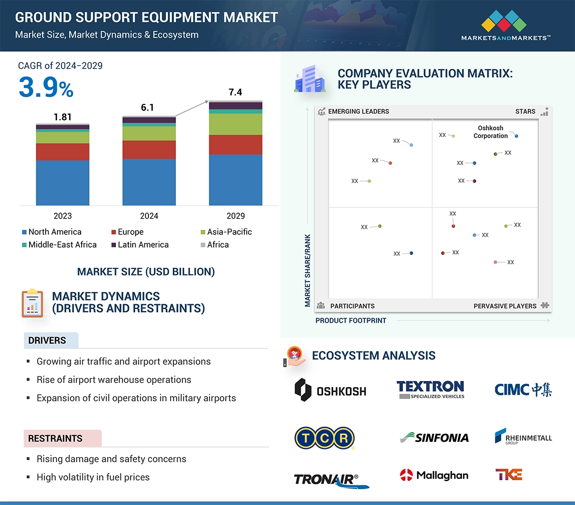 Ground Support Equipment (GSE) market encompasses all equipment, machinery, and vehicles used to support aircraft operations on the ground. This includes a wide range of specialized equipment designed to facilitate various tasks such as aircraft maintenance, loading and unloading of cargo and passengers, refueling, towing, de-icing, and general ground handling activities. GSE plays a critical role in ensuring the efficiency, safety, and smooth operation of airports and airlines worldwide. The market includes both new equipment sales as well as aftermarket services such as maintenance, repair, and spare parts.