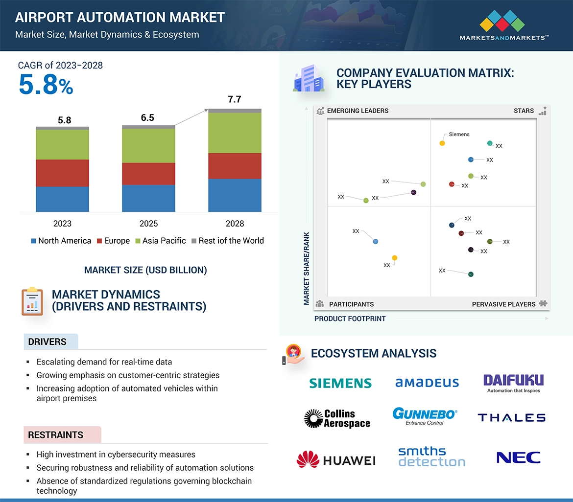 To identify and analyze key drivers, restraints, challenges, and opportunities influencing the growth of the Airport Automation Market