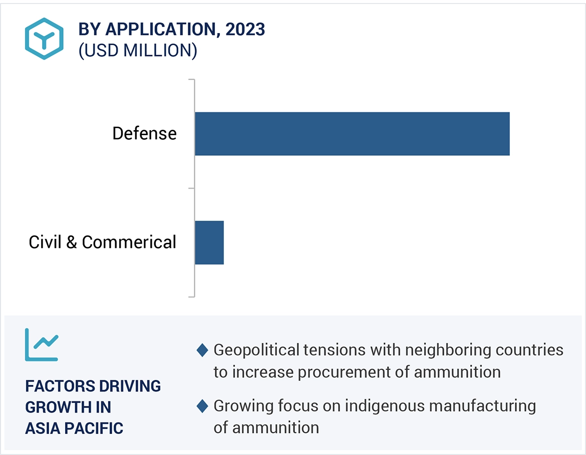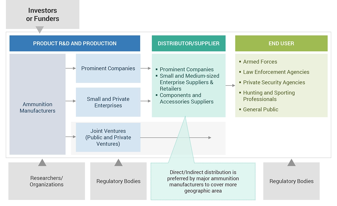 Ammunition is fired, scattered, or dropped from a weapon or a weapon system. It can be broadly classified into four categories: Small-Caliber ammunition, Medium-Caliber ammunition, Large-Caliber ammunition, and others. Ammunition is mainly procured by military and law enforcement agencies such as state police and federal police. Small-caliber ammunition is used by civilians in hunting, sports activities, and self-defense applications.