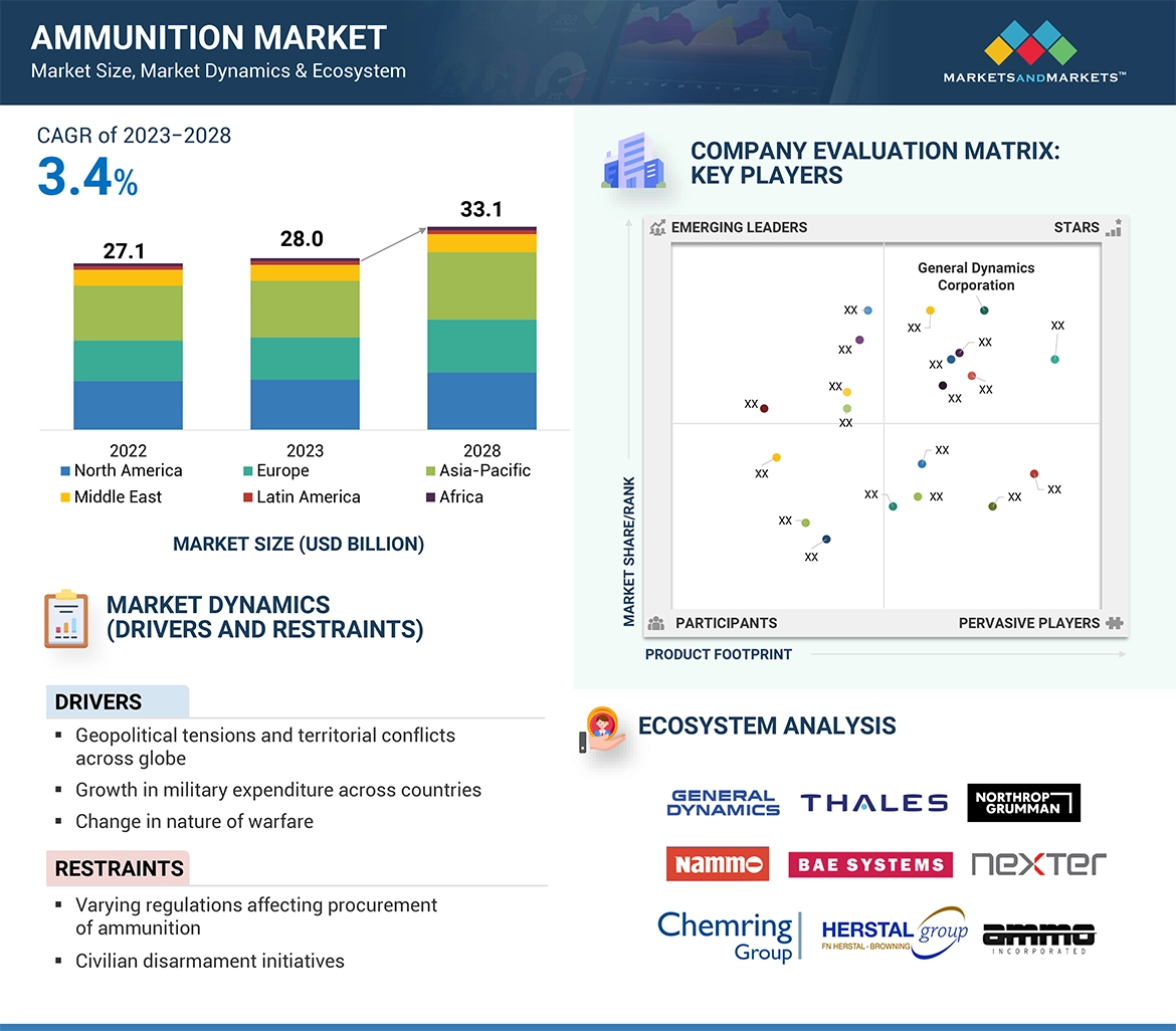 To identify and analyze key drivers, restraints, opportunities, and challenges influencing the growth of the ammunition market