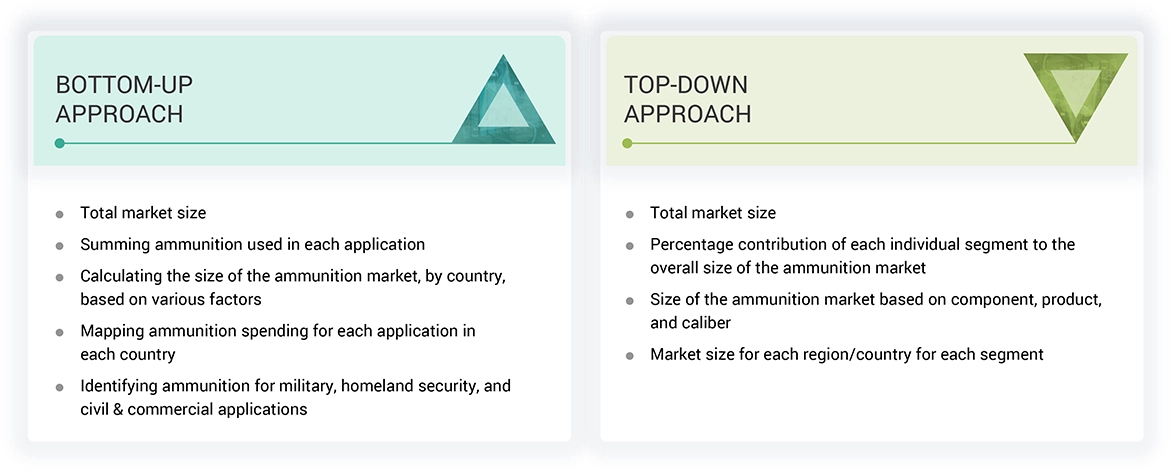Both top-down and bottom-up approaches were used to estimate and validate the size of the ammunition market. The following figure offers a representation of the overall market size estimation process employed for the purpose of this study on the ammunition market.
