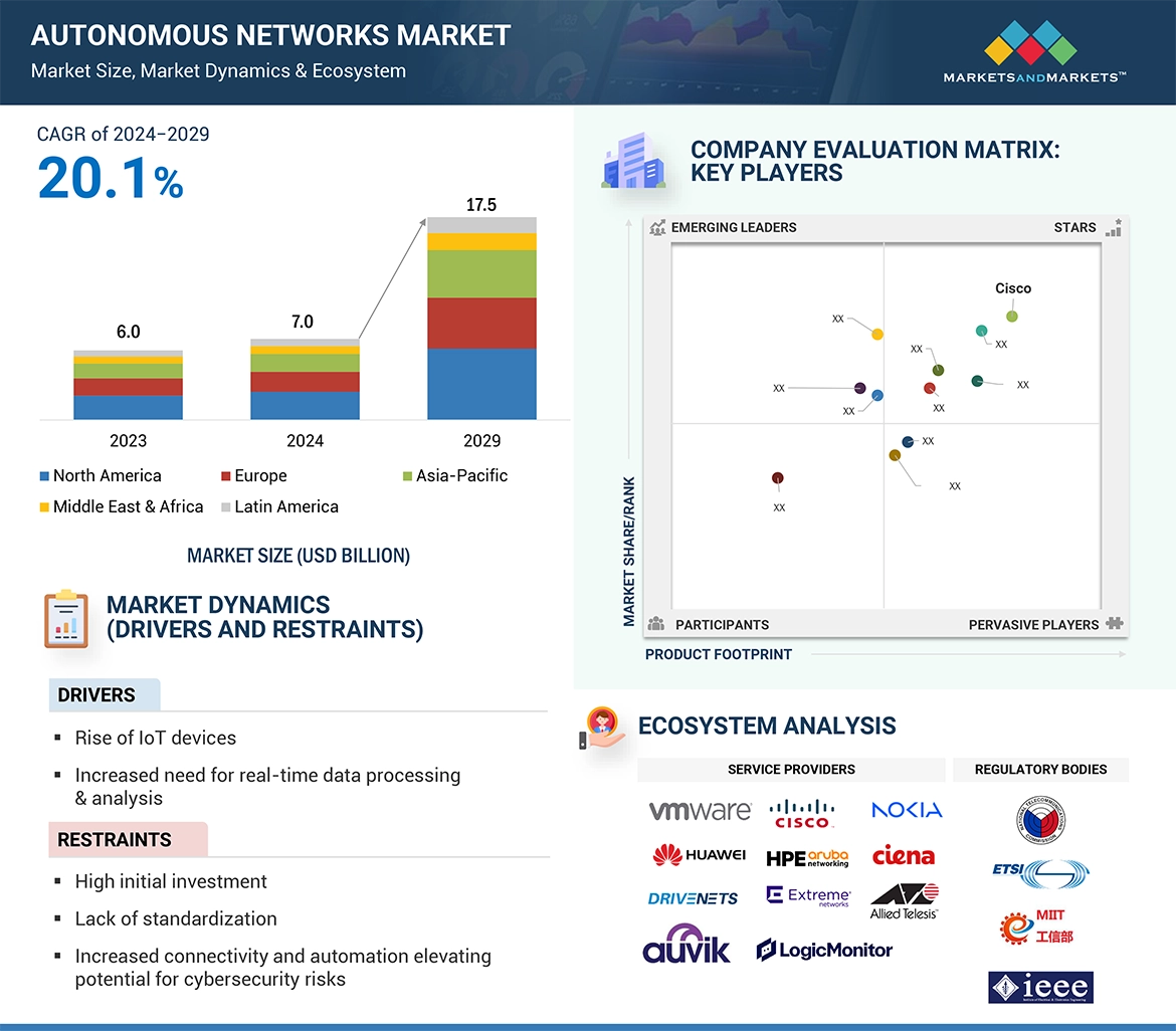 To determine and forecast the global autonomous networks market based on offering, end-user, and region from 2024 to 2029, and analyze the various macro and microeconomic factors that affect the market growth