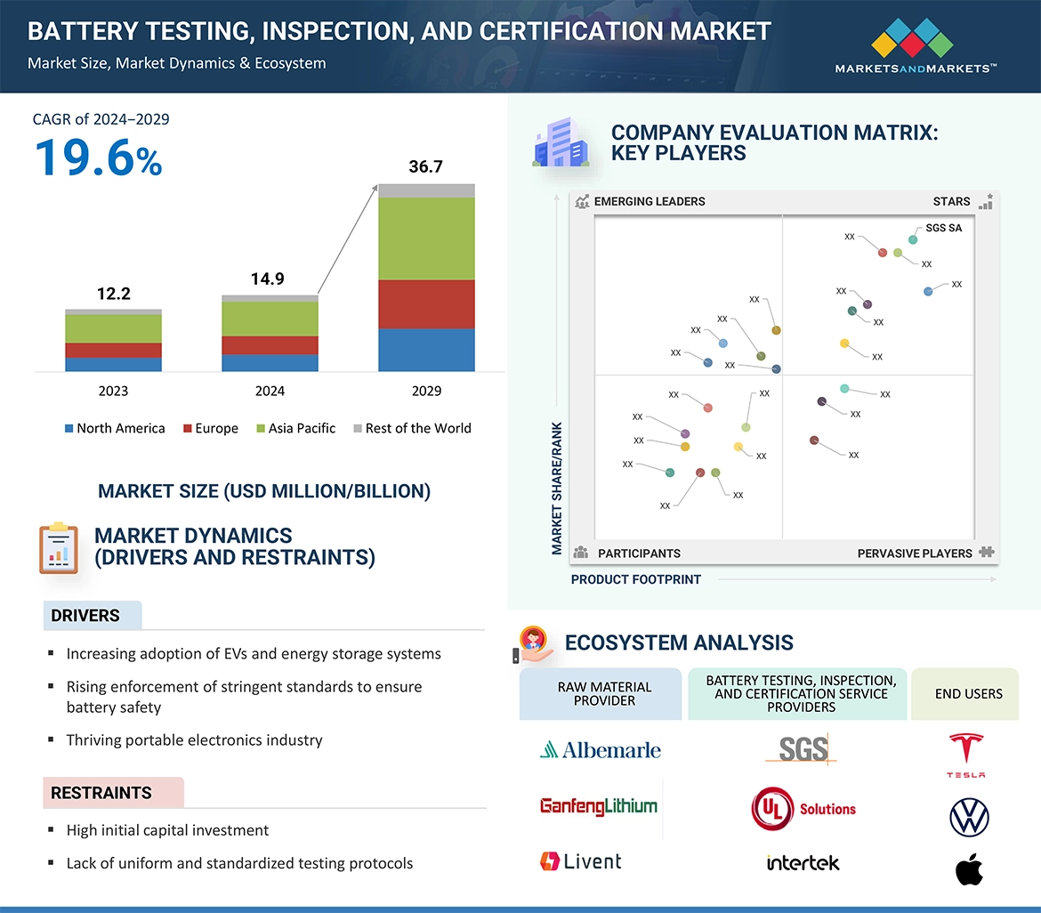 To provide detailed information regarding the major drivers, restraints, opportunities, and challenges influencing the growth of the battery testing, inspection, and certification market