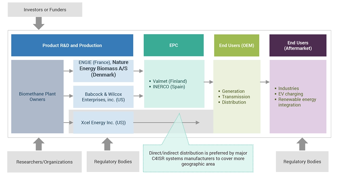 The biomethane market encompasses various stakeholders, including manufacturers of biomass power generation, providers of manufacturing technology, and technical support providers throughout the supply chain. On the demand side, there is a noticeable increase in the demand for biomass power generation across applications such as generation, transmission, and distribution. On the supply side, there is a growing demand for contracts from the industrial sector, and significant activity in terms of mergers and acquisitions among major players. To gather qualitative and quantitative information, interviews were conducted with numerous primary sources from both the supply and demand sides of the market.