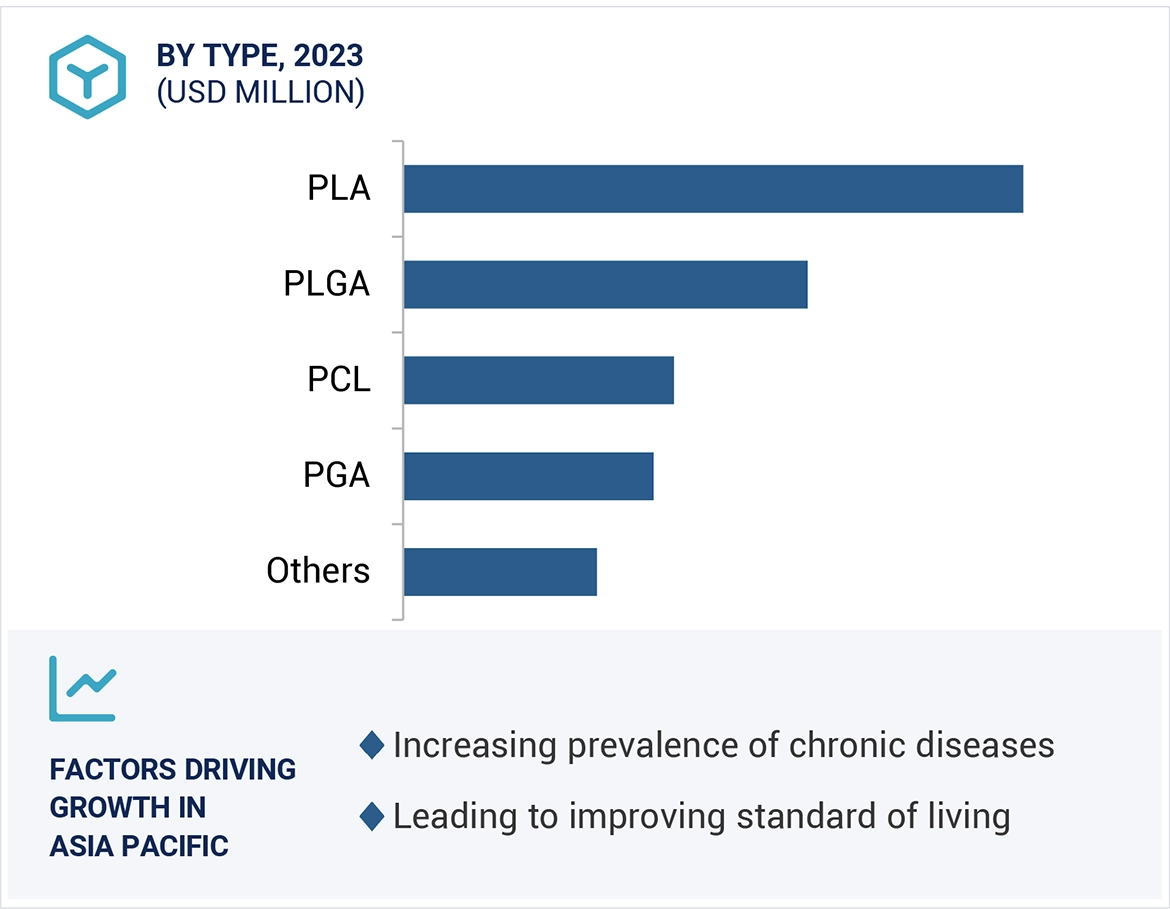 The bioresorbable polymers are the type of polymers. They are designed to naturally degrade and be absorbed within biological environments. These polymers are utilized in medical and healthcare sectors, where they are used to manufacture orthopedic devices and drug delivery systems. The demand of bioresorbable polymers influenced by the innovation in medical devices and the need for the eco-friendly alternatives to the permanent implants. The key components of the bioresorbable polymers are PLA, PGA, PLGA, and PCL.