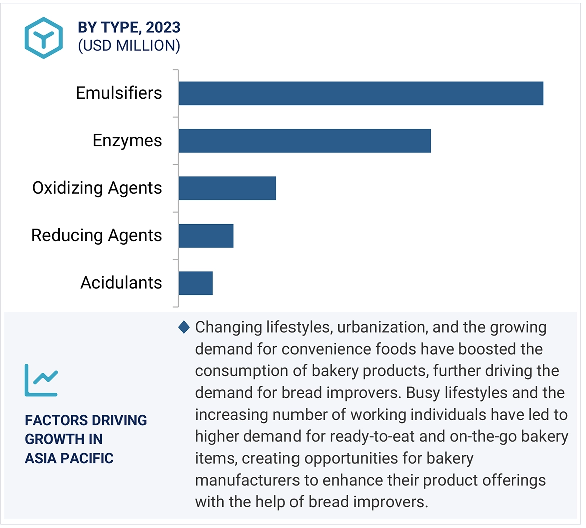 By improving the bread products quality, texture, and shelf life, bread improvers are essential to the bakery sector. These ingredients are designed to solve a variety of problems that arise when making bread, including volume, consistency, and freshness of the dough. The market is growing for bread improvers that adhere to clean label requirements as customer preferences are moving towards healthier and cleaner products.