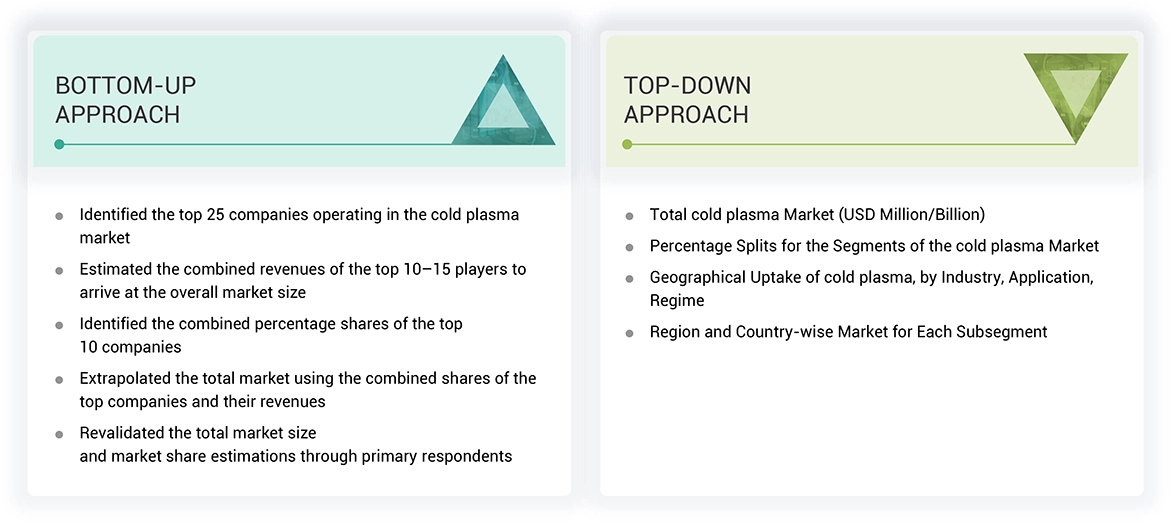 After arriving at the overall size of the global cold plasma market through the above-mentioned methodology, this market was split into several segments and subsegments. The data triangulation and market breakdown procedures were employed, wherever applicable, to complete the overall market engineering process and arrive at the exact market value data for the key segments and subsegments. The extrapolated market data was triangulated by studying various macro indicators and regional trends from both demand- and supply-side participants.