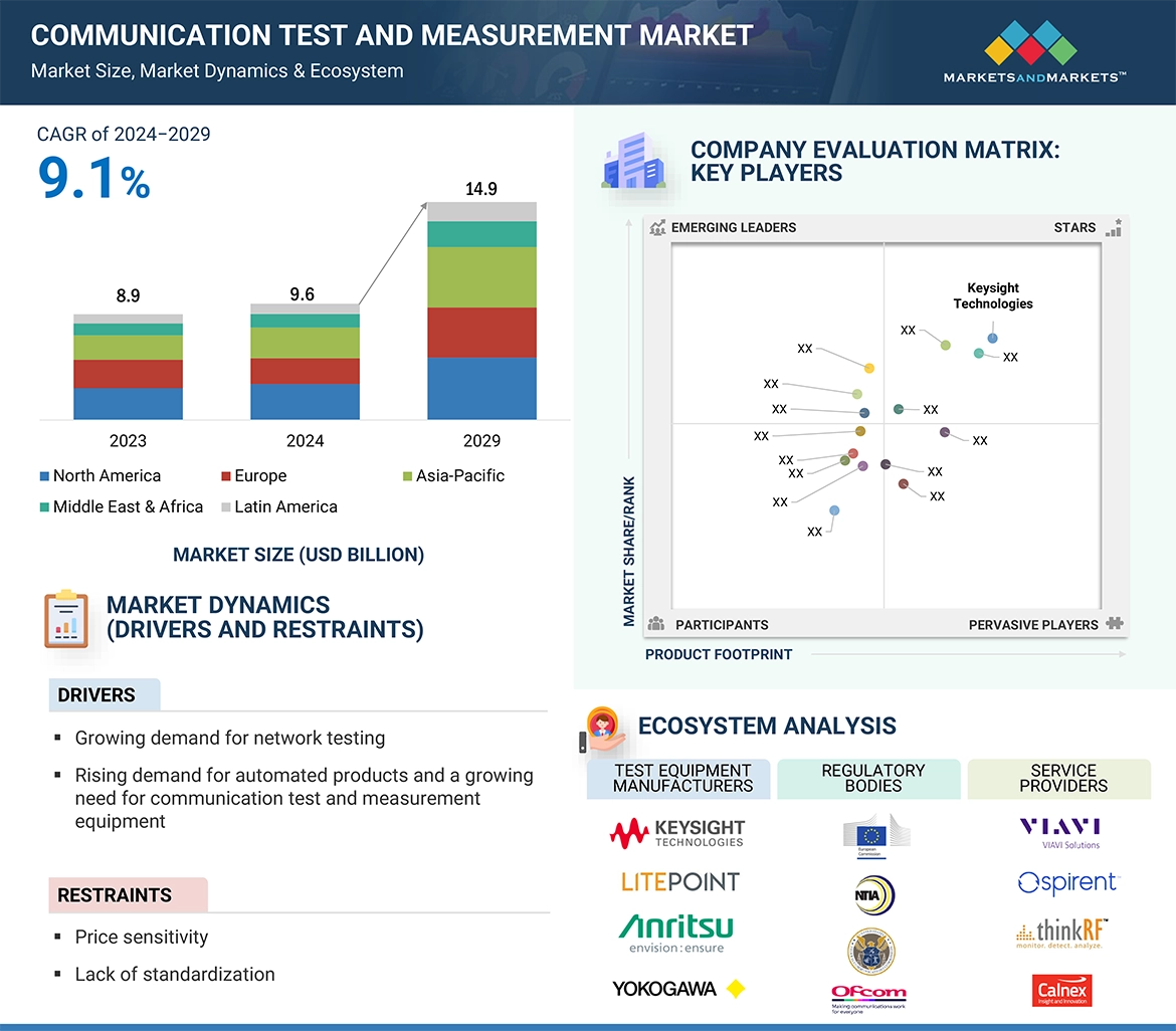 The communication test and measurement market comprise hardware, software, and services, which are used to test all devices and networks used for communication purposes. It's the process of evaluating and quantifying the performance and quality of communication networks, devices, and systems. Communication test and measurement equipment are used to test both wireless and wired networks. These tests and measurements can apply to various types of networks, including but not limited to, telecommunication networks, mobile networks, internet services, and broadcast networks.