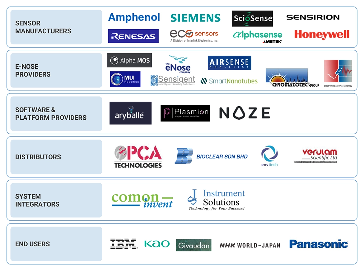 The ecosystem of the digital scent technology market encompasses a range of components such as sensors, e-noses, scent synthesizers, cartridges, and software kits. This market exhibits diversity, with numerous companies vying across its value chain to maintain their foothold and expand their market presence. Anticipated to experience notable expansion in the foreseeable future, the digital scent technology market is driven by increasing demand for e-noses in clinical diagnosis applications.