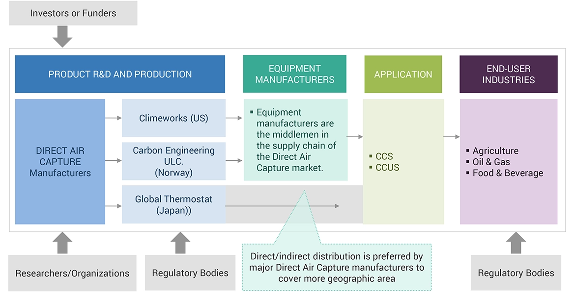 The direct air captures market comprises several stakeholders, such as direct air capture manufacturers, technology providers, and technical support providers in the supply chain. The demand side of this market is characterized by the rising demand for direct air capture systems in various applications such as carbon capture, and storage (CCS), and carbon capture, utilization, and storage (CCUS). The supply side is characterized by rising demand for contracts from the industrial sector and mergers & acquisitions among big players. Various primary sources from both the supply and demand sides of the market were interviewed to obtain qualitative and quantitative information. Following is the breakdown of primary respondents: