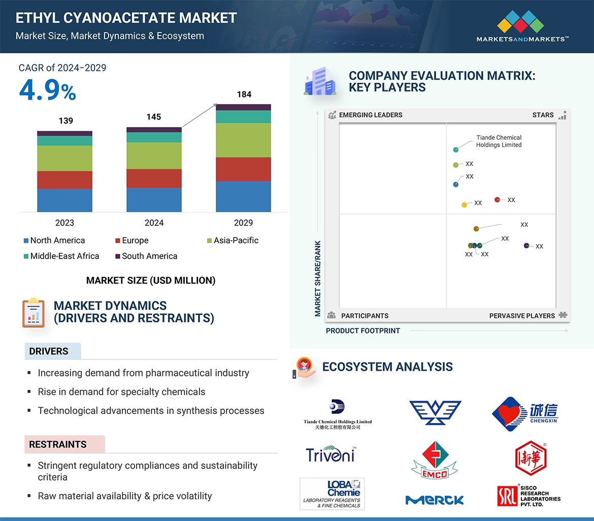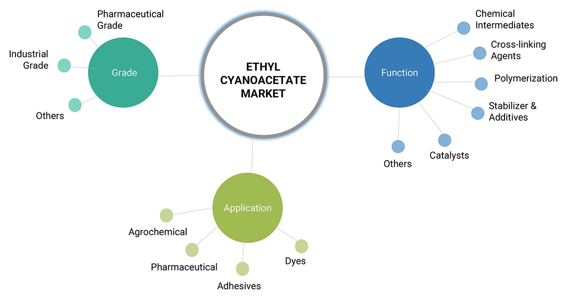The Ethyl Cyanoacetate market refers to the commercial sector involved in the production, distribution, and sale of ethyl cyanoacetate , a versatile chemical compound used as an intermediate in various industries. Ethyl cyanoacetate finds extensive applications in pharmaceuticals, agrochemicals, adhesives, textiles, and other sectors, where it serves as a crucial building block in the synthesis of diverse compounds. Opportunities for ethyl cyanoacetate include the development of new derivatives and formulations tailored to specific industrial needs, fostering product diversification and market expansion. Technological advancements optimizing production processes, expanding applications and collaborations for innovation contribute and the trend towards eco-friendly solutions fuel market growth.