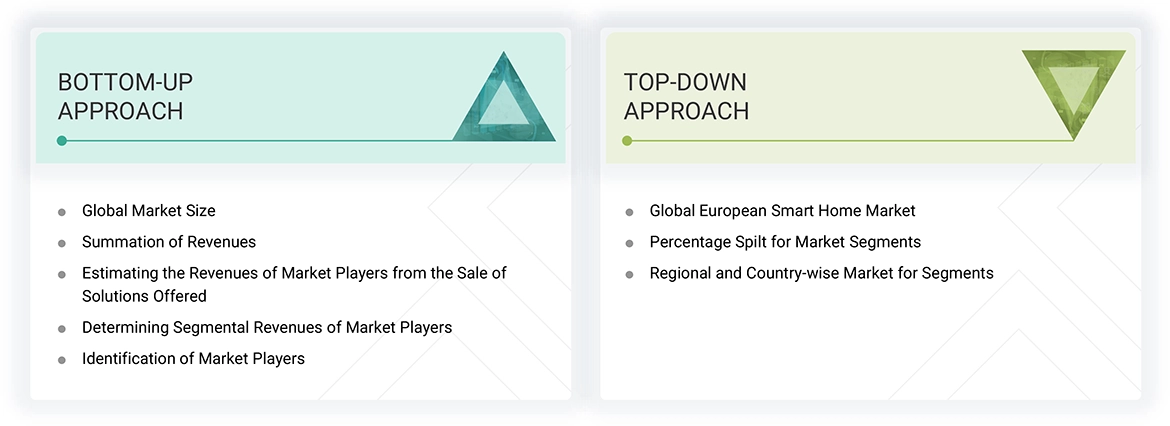 The research study involved four major steps in estimating the European smart home market size. Exhaustive secondary research has been done to collect important information about the market and peer markets. The next step has been to validate these findings and assumptions and size them with the help of primary research with industry experts across the value chain. Both top-down and bottom-up approaches have been used to estimate the market size. After this, the market breakdown and data triangulation approaches have been adopted to estimate the market sizes of segments and subsegments.
