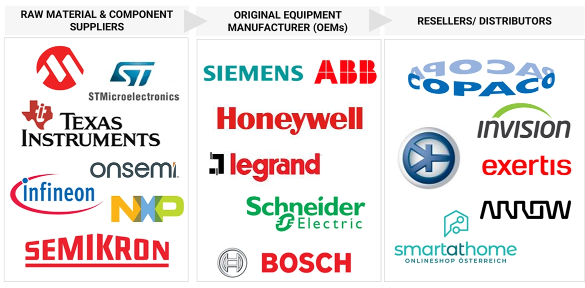 Identifying different stakeholders in the European smart home market that influence the entire market, along with participants across the supply chain