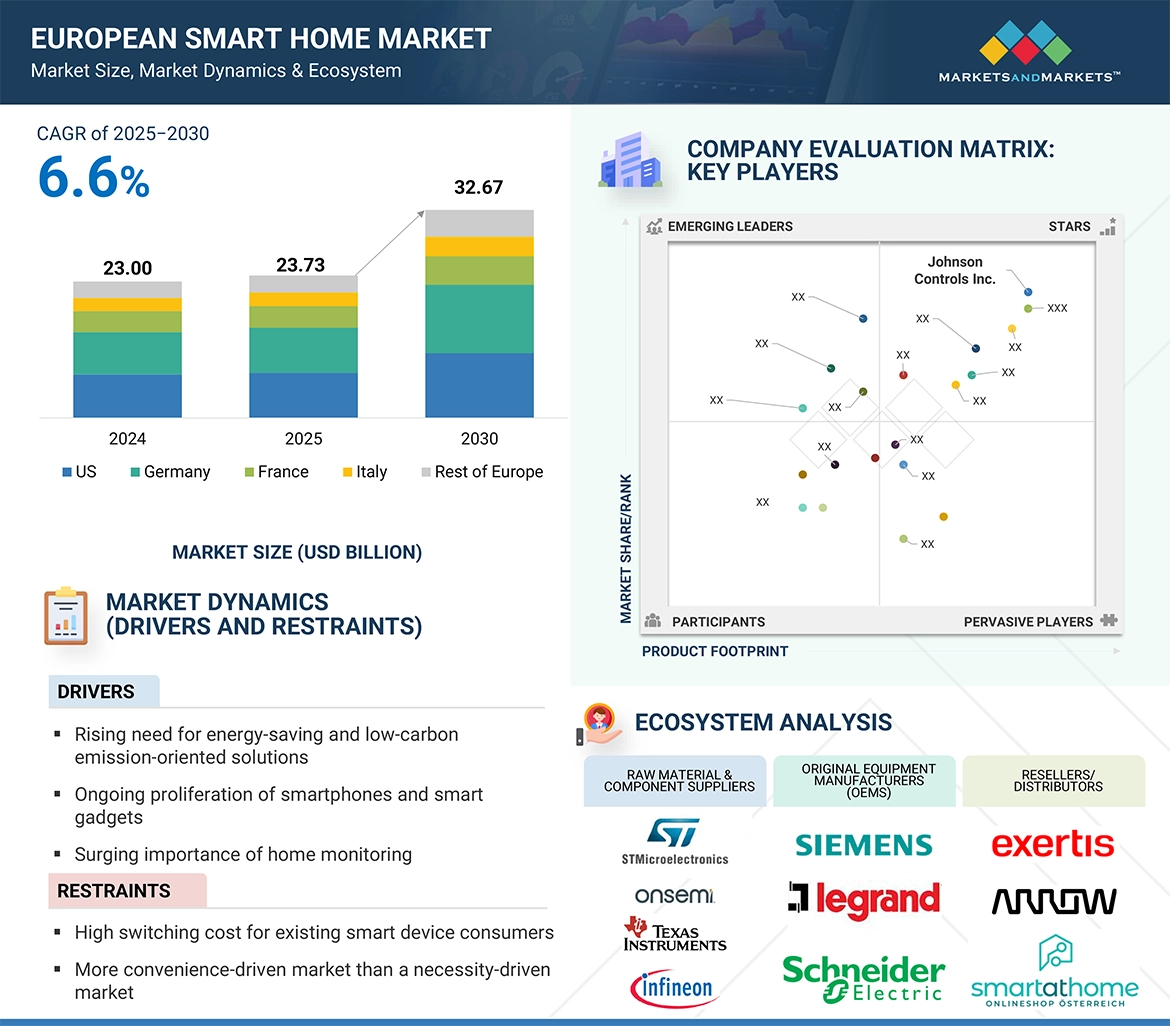 Analyzing major manufacturers and service providers in the European smart home market and studying their solutions and service portfolios
