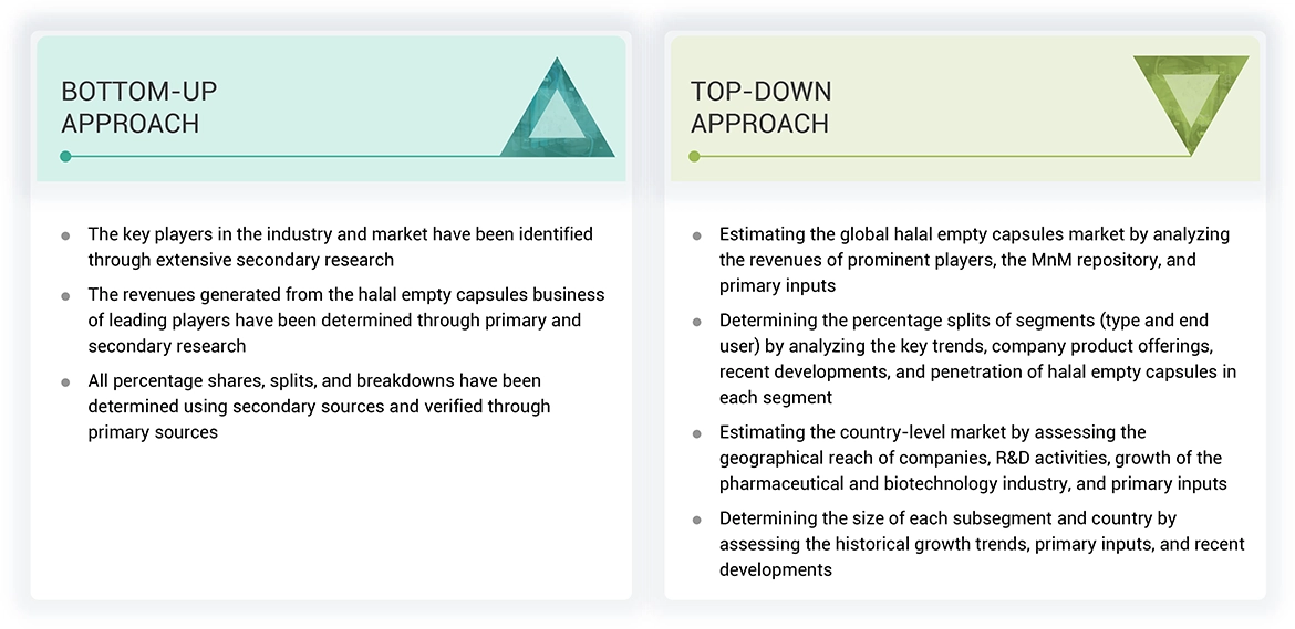 Both top-down and bottom-up approaches were used to estimate and validate the total size of the halal empty capsules market. These methods were also used extensively to estimate the size of various subsegments in the market. The research methodology used to estimate the market size includes the following:
