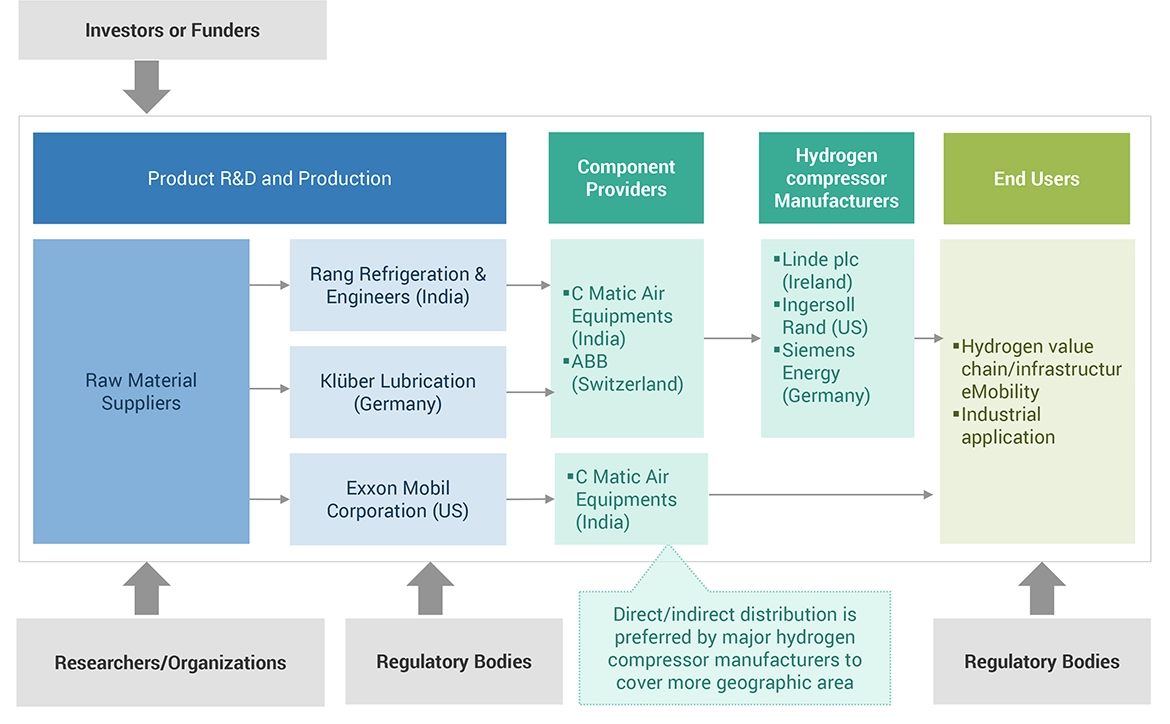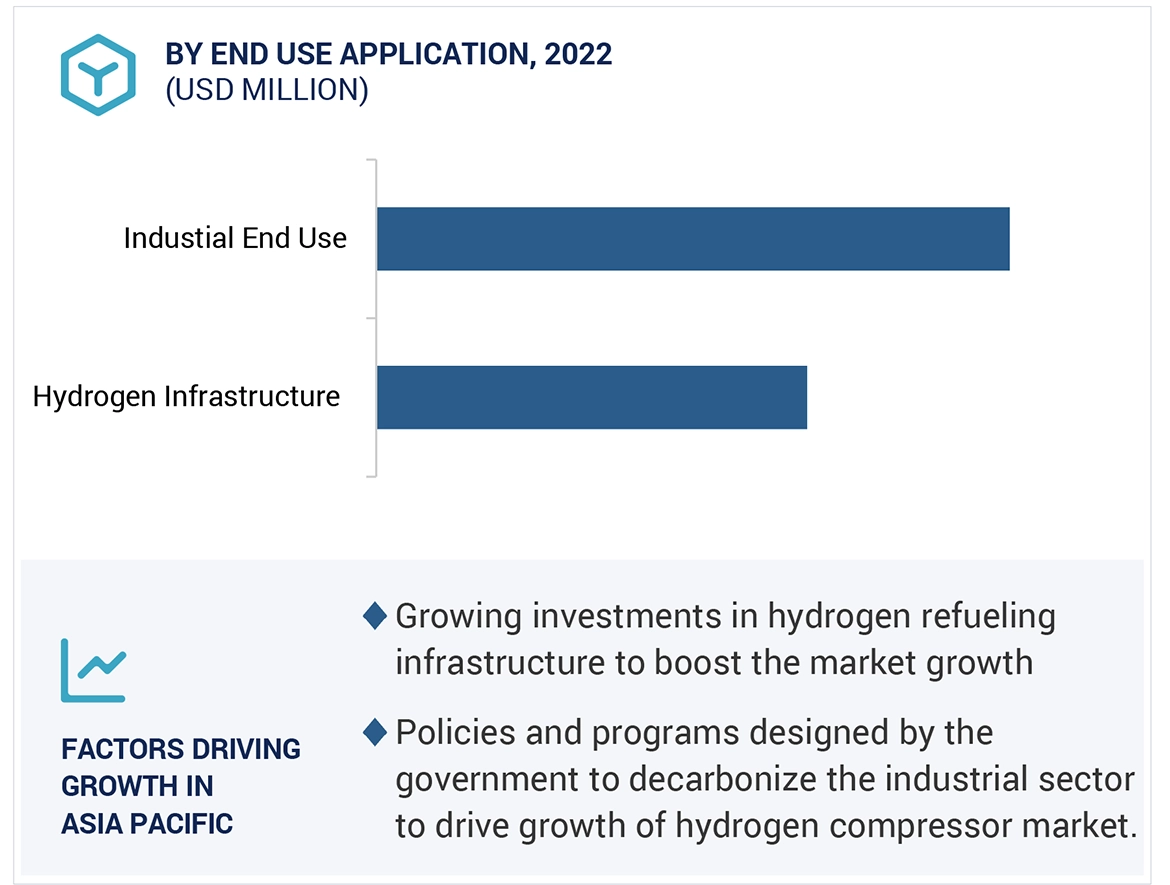 Hydrogen is the lightest and most abundant element. It is normally produced at relatively low pressures (20-30 bar) and must be compressed before transportation. A hydrogen compressor is a mechanical device that increases the pressure of hydrogen gas by reducing its volume. The hydrogen compressors are vital for several applications such as refueling stations, oil & gas industries, chemical industries, and other end use applications that require hydrogen to be stored, transported, or used at higher pressures than what is normally produced or provided.