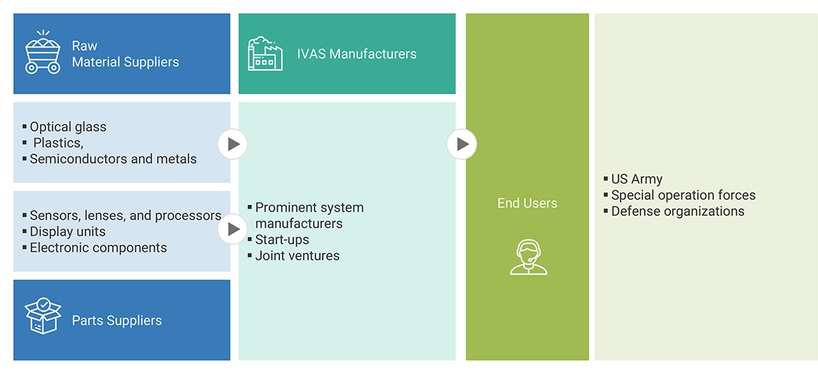 The Integrated Virtual Augmented System (IVAS) market integrates virtual reality (VR) and augmented reality (AR) technologies into a single system that improves situational awareness for military personnel. IVAS incorporates helmet-mounted displays (HMDs), night vision devices (NVDs), and AR/VR systems, among other wearable technologies, to create practical, interactive experiences that combine digital content with the real-world setting. This technology is used in various applications including combat missions, simulations, and training exercises.