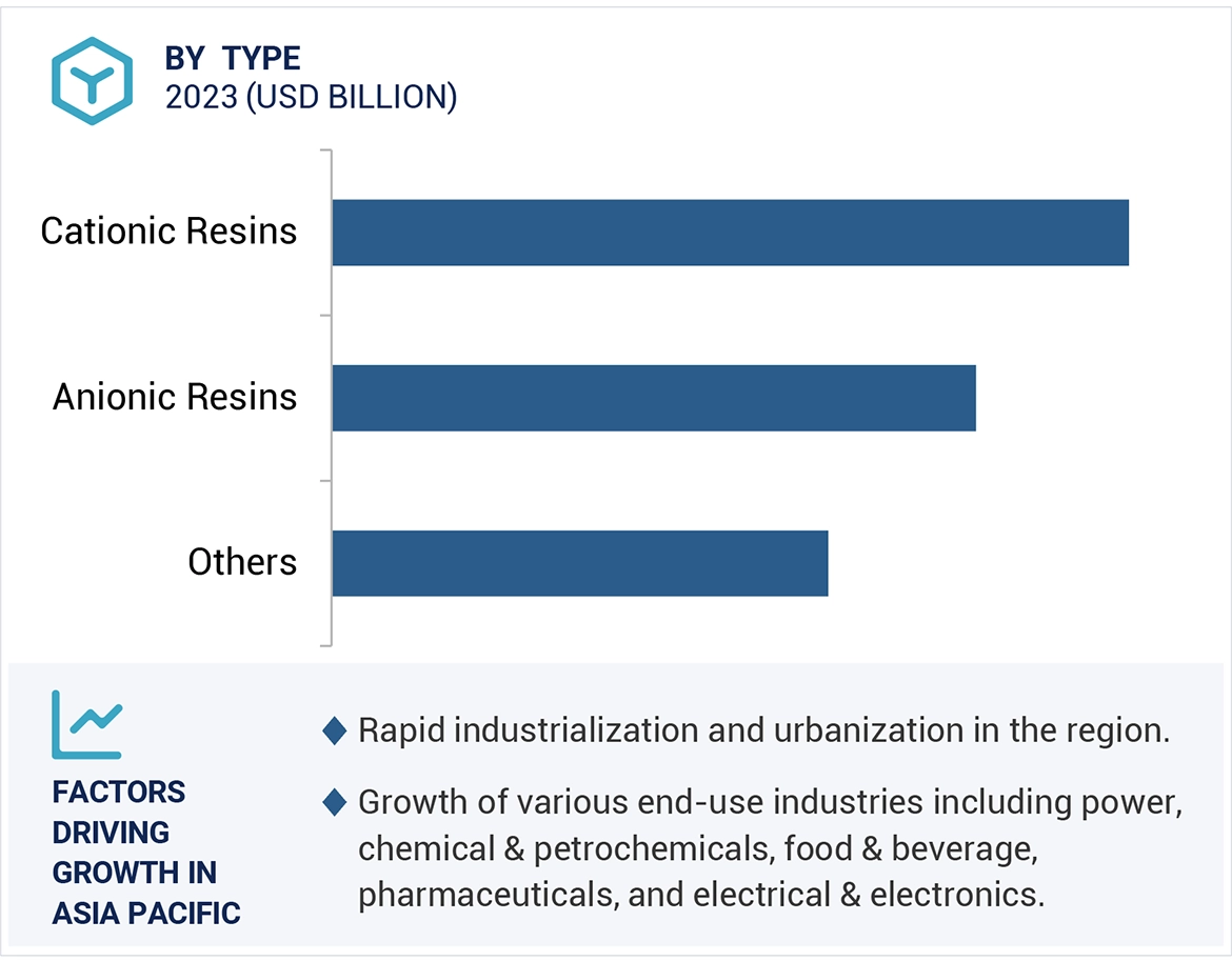 Ion exchange resins are insoluble polymers and are prepared by cross-linking polystyrenes that contain various functional groups. It acts as a medium for ion exchange reactions, consisting of a polymer matrix to which ion exchange sites are attached. Charged functional groups participate in these sites, attracting and facilitating ion-exchange with other ions carrying a different charge. Ion-exchange resins are usually used in the form of white or yellow porous microbead, membrane, or granular material, though other forms such as sheets are also used. Ion-exchange resins are of two major types, namely cation exchange resins, which attract positive ions, and anion exchange resins, which attract negative ions. Ion exchange resins find applications in various end use industries like power, chemical & petrochemical, food & beverage, pharmaceutical, electrical & electronics, metal & mining, among other industrial operations aimed at system efficiency, reduction of energy consumption, and extension of equipment life.