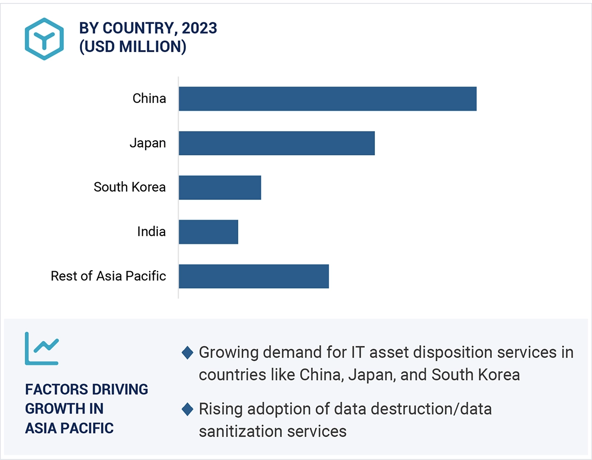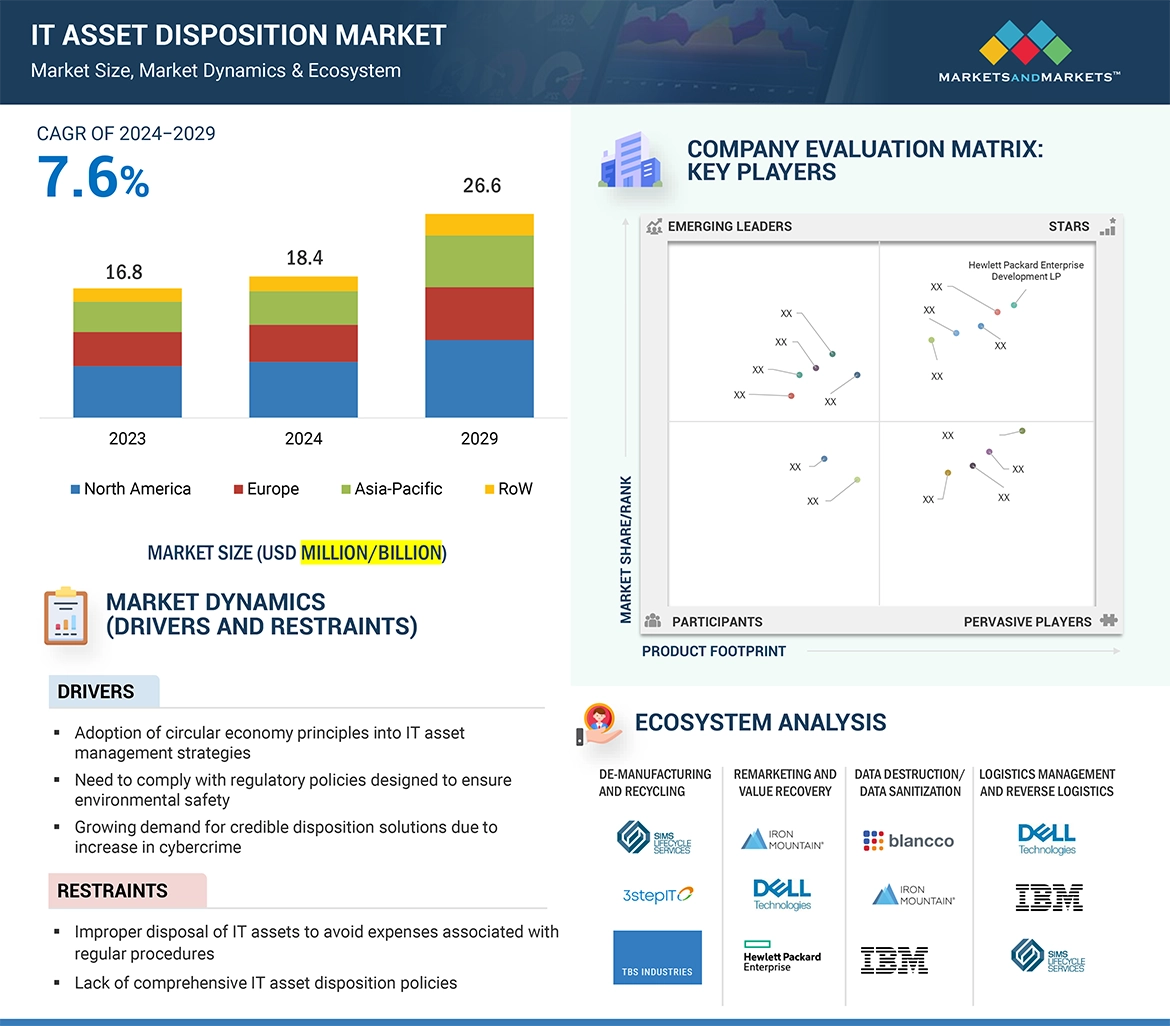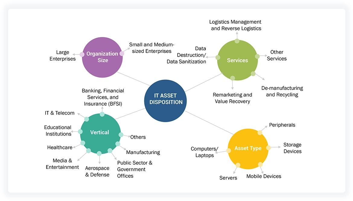 End-user organizations often prefer third-party vendors or service providers for the disposition of their used and old IT assets in a safe and secure manner. The key offerings of these service providers in this market space are data destruction/data sanitization, asset recycling, asset remarketing, logistics management, and reverse logistics. These service providers are certified in accordance with regulatory compliances and mandates for the proper disposal of e-waste and data destruction. Assets such as computers/laptops, servers, storage devices, mobile devices, and peripherals are considered for disposition. The market is diversified, with more than 25 companies competing across the value chain to sustain their position and increase their market share.