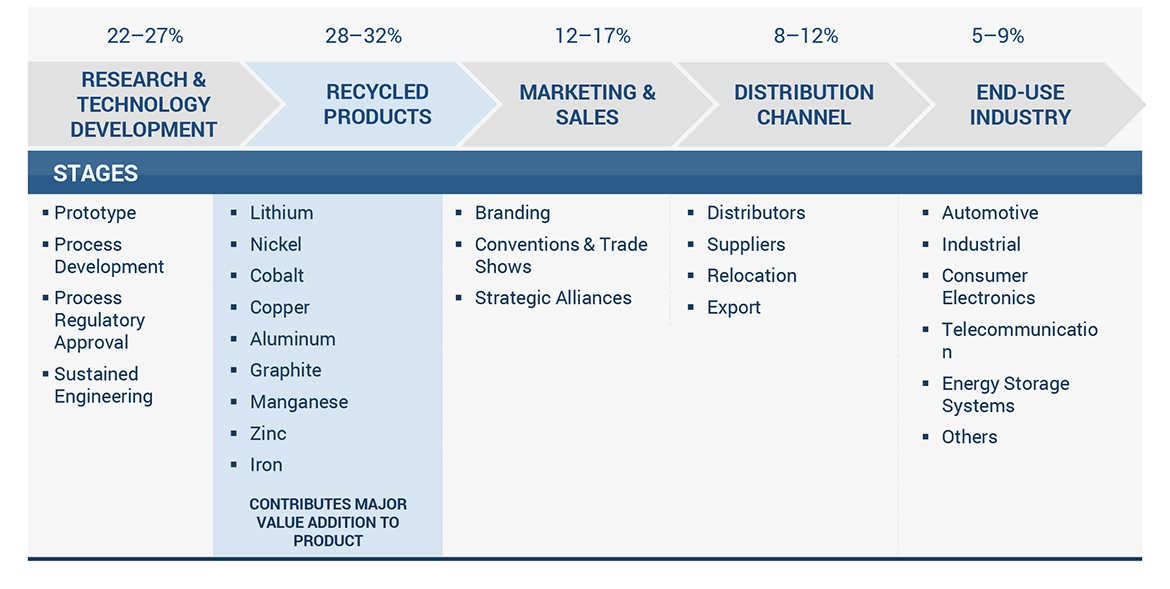 Secondary sources for this research study include annual reports, press releases, and investor presentations of companies; white papers; certified publications; and articles by recognized authors; gold- and silver-standard websites; lithium-ion battery recycling manufacturing companies, regulatory bodies, trade directories, and databases. The secondary research was mainly used to obtain key information about the industry’s supply chain, the total pool of key players, market classification, and segmentation according to industry trends to the bottom-most level and regional markets. It has also been used to obtain information about key developments from a market-oriented perspective.