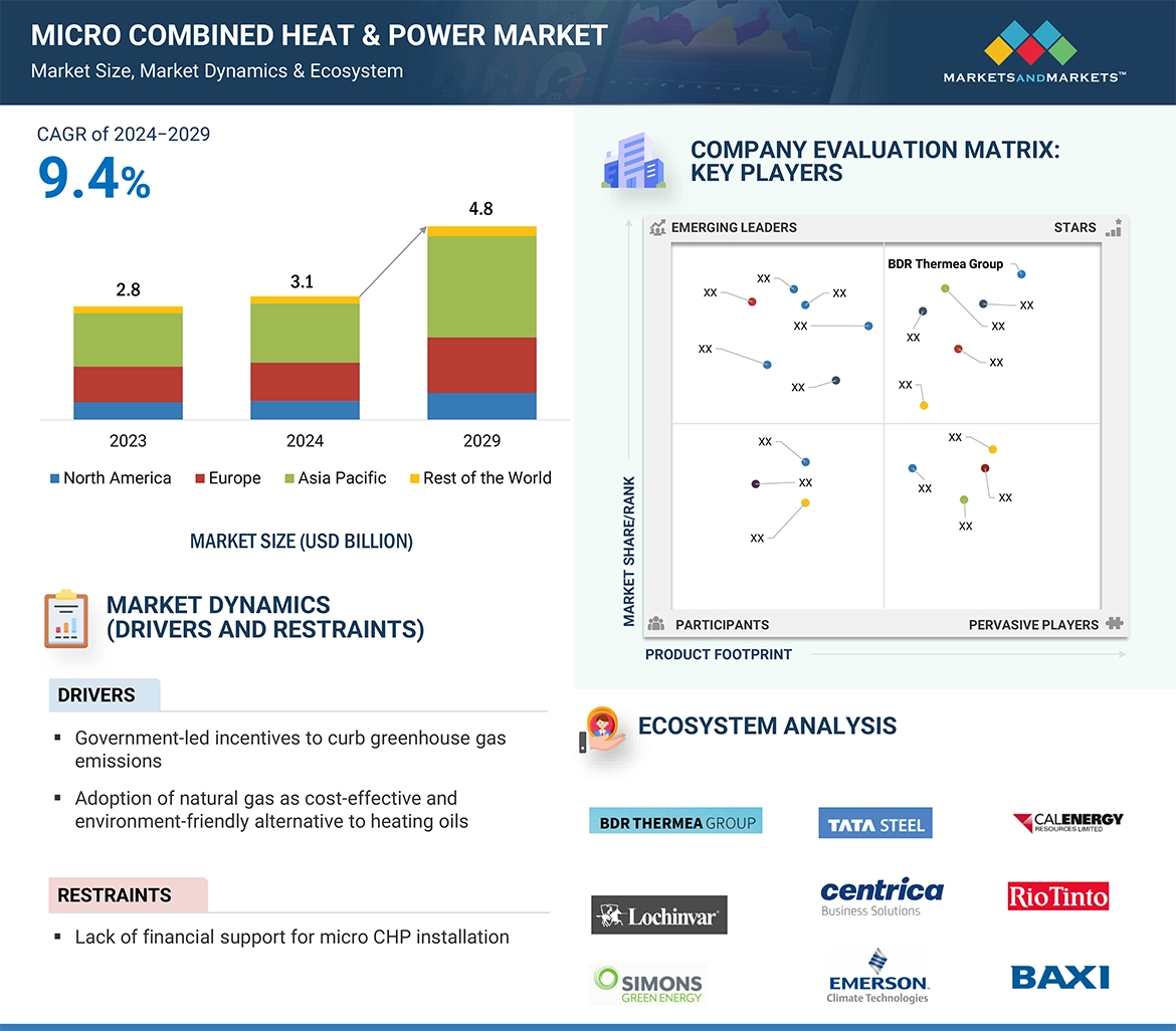 The Micro Combined heat and power market comprises several stakeholders such as Combined heat and power manufacturers, service providers, distributors, consulting companies from Energy & Power sector, state and national authorities and end-users in the supply chain. The demand side of this market is characterized by the rising demand for efficient energy needs. The supply side is characterized by rising demand for contracts from the industrial, commercial, utilities, and residential sector and mergers & acquisitions among big players. Various primary sources from both the supply and demand sides of the market were interviewed to obtain qualitative and quantitative information.