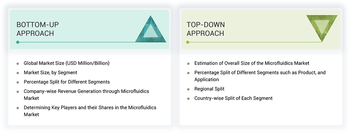 The Microfluidics market was categorized into various segments and subsegments with the help of the above procedure. Then, data triangulation and the market segmentation process are carried out to ensure the accuracy of the data for each segment. Factors and trends from demand and supply sides were studied . Top-down and bottom-up approaches provide the outcome from the analysis of the Microfluidics market.