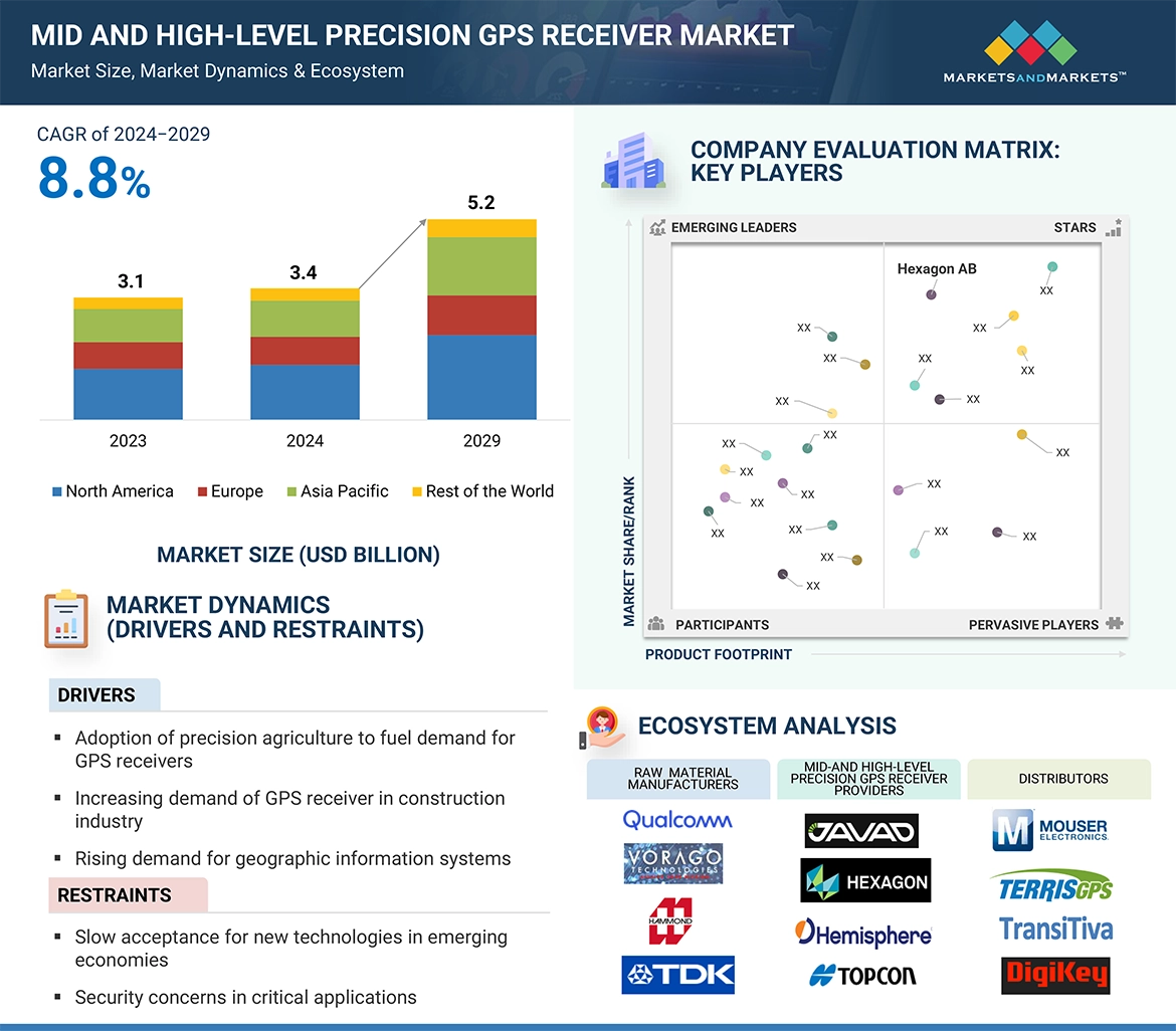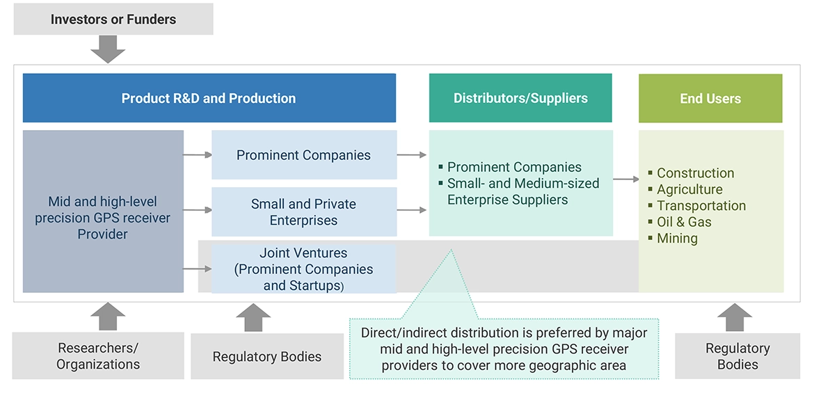 Companies offering mid and high-level precision GPS receiver products have been identified, and their product mapping with respect to different parameters, such as functional deployment, type, and end-user industry has been carried out.