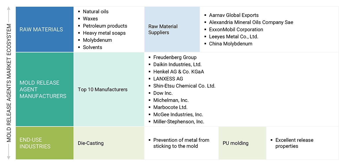 The mold release agents market comprises several stakeholders, such as raw material suppliers, end-product manufacturers, and regulatory organizations in the supply chain. The demand side of this market is characterized from key opinion leaders in various applications for the Mold release agents market. The supply side is characterized by advancements in technology and diverse application industries. Various primary sources from both the supply and demand sides of the market were interviewed to obtain qualitative and quantitative information.