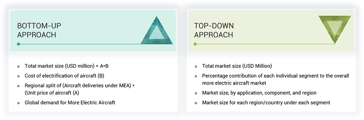 The top-down and bottom-up approaches have been used to estimate and validate the more electric aircraft market size. The following figure in this subsection represents the overall market size estimation process employed for this study.