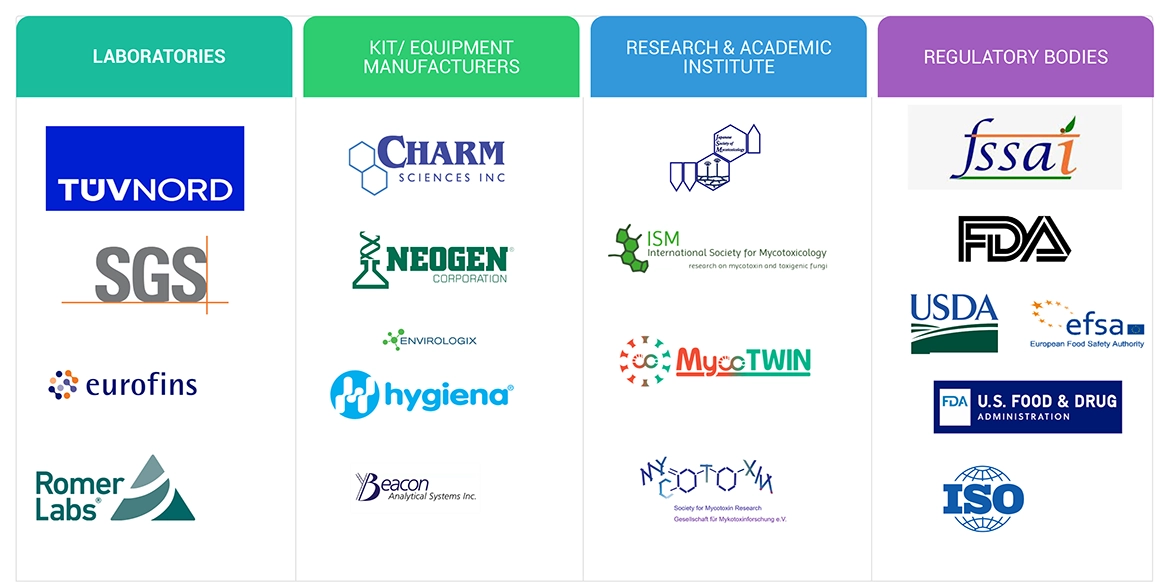 This research study involved the extensive use of secondary sources—directories and databases such as Bloomberg Businessweek and Factiva—to identify and collect information useful for a technical, market-oriented, and commercial study of the mycotoxin testing market.
