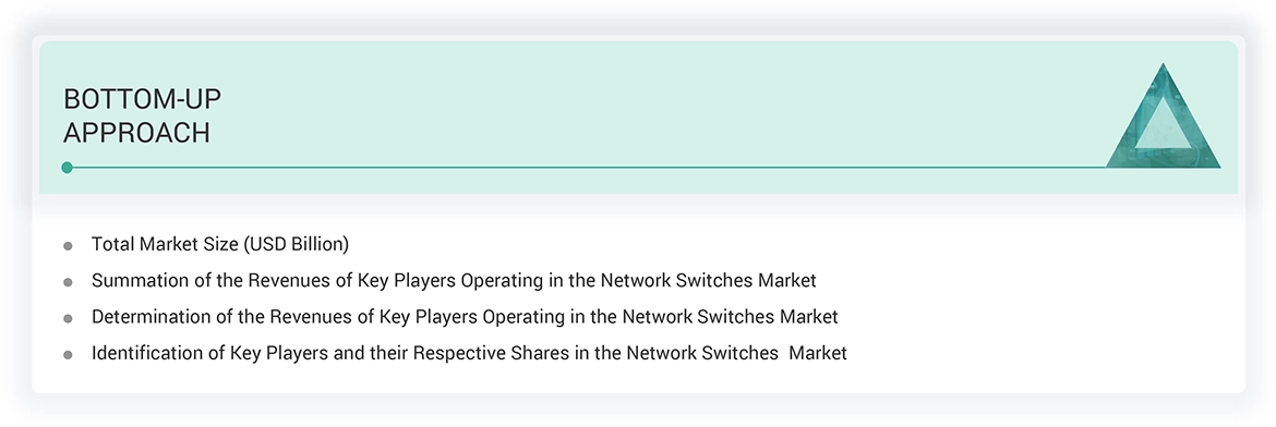 The study involved four major activities in estimating the size for network switches market. Exhaustive secondary research was done to collect information on the market, peer market, and parent market. The next step was to validate these findings, assumptions, and sizing with industry experts across value chains through primary research. The bottom-up approach was employed to estimate the overall market size. After that, market breakdown and data triangulation were used to estimate the market size of segments and subsegments.