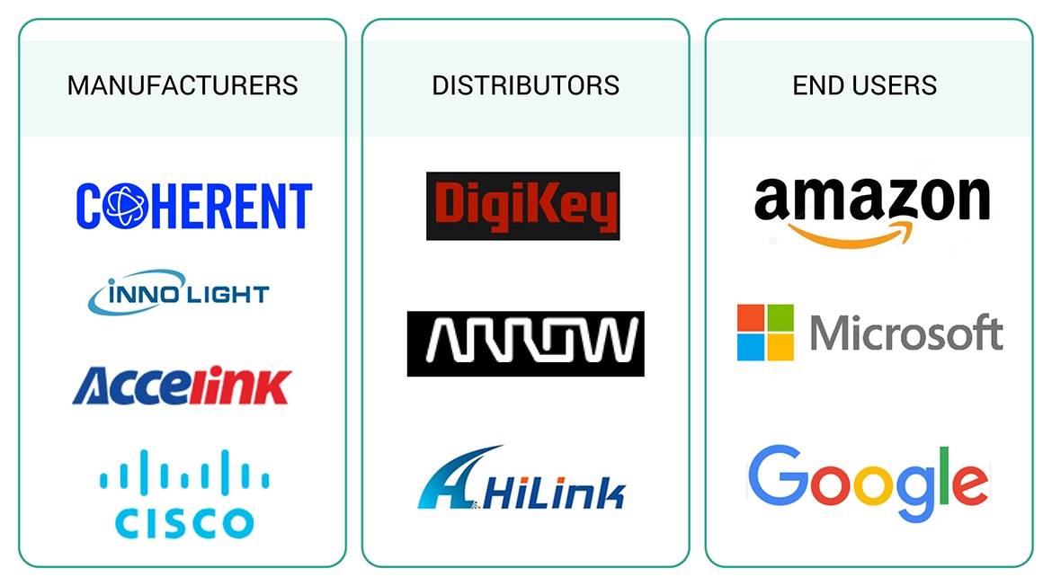 Various secondary sources were used to identify and collect relevant information. These include corporate filings such as annual reports, press releases, investor presentations, and financial statements; trade, business, and professional associations; white papers, journals, and articles from recognized authors; certified publications related to optical transceiver; directories; and databases.