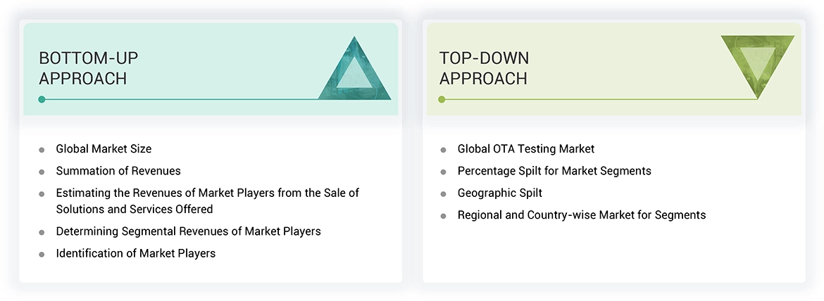 The research study involved 4 major activities in estimating the size of the OTA testing market. Exhaustive secondary research has been done to collect important information about the market and peer markets. The validation of these findings, assumptions, and sizing with the help of primary research with industry experts across the value chain has been the next step. Both top-down and bottom-up approaches have been used to estimate the market size. Post which the market breakdown and data triangulation have been adopted to estimate the market sizes of segments and sub-segments.