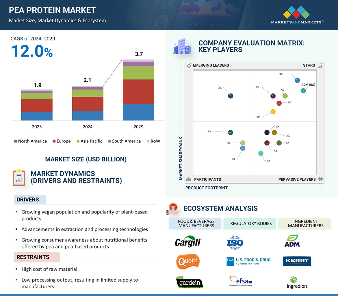 Other factors considered include penetration rate of pea protein in end-user applications such as meat substitutes, performance nutrition, and functional foods, consumer awareness, and function trends, pricing trends, the adoption rate and price factors, patents registered, and organic and inorganic growth attempts.