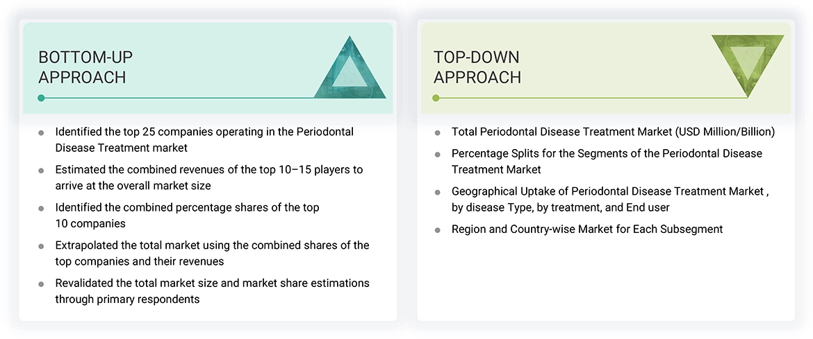 After arriving at the overall size of the global periodontal disease treatment market through the above-mentioned methodology, this market was split into several segments and subsegments. The data triangulation and market breakdown procedures were employed, wherever applicable, to complete the overall market engineering process and arrive at the exact market value data for the key segments and subsegments. The extrapolated market data was triangulated by studying various macro indicators and regional trends from both demand- and supply-side participants.
