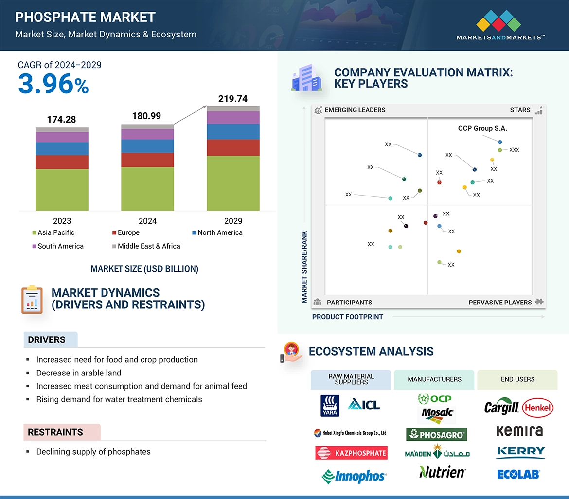Phosphates are chemical compounds that come in various forms. They have mineral phosphates, organic phosphates, as well as phosphate salts among others. These are paramount in many biological, environmental, as well as industrial processes and are applied extensively in many industries, most importantly in agriculture and food production. The growth of the phosphate market is attributed to their increased consumption in agricultural sector due to the growing population and increasing demand for food.