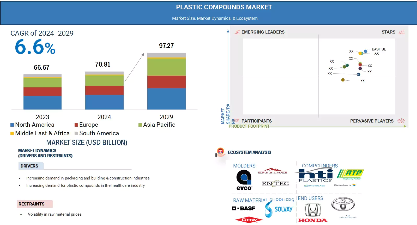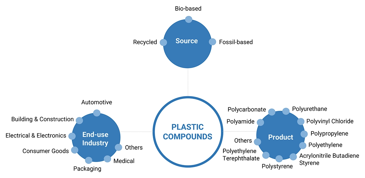 To define, describe, and forecast the size of the plastic compounds market, in terms of value and volume.
