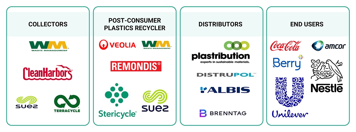 End-use market participants of different segments of the post-consumer recycled plastics market