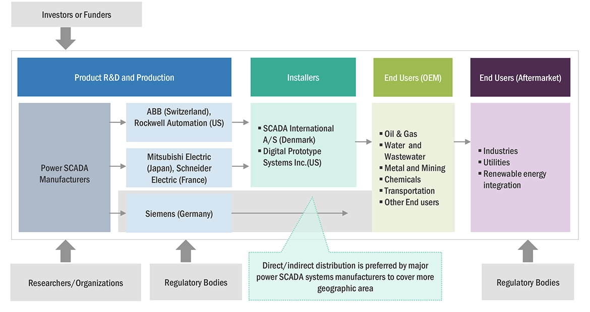 The power SCADA market involves various stakeholders throughout its supply chain, including component manufacturers, product manufacturers/assemblers, service providers, distributors, and end-user industries. The primary driver of market demand originates from industrial end-users, while the increasing needs of transmission and distribution utilities also contribute significantly to market growth. On the supply side, a noticeable trend is the heightened demand for contracts from the industrial sector, accompanied by a notable prevalence of mergers and acquisitions among major industry players.