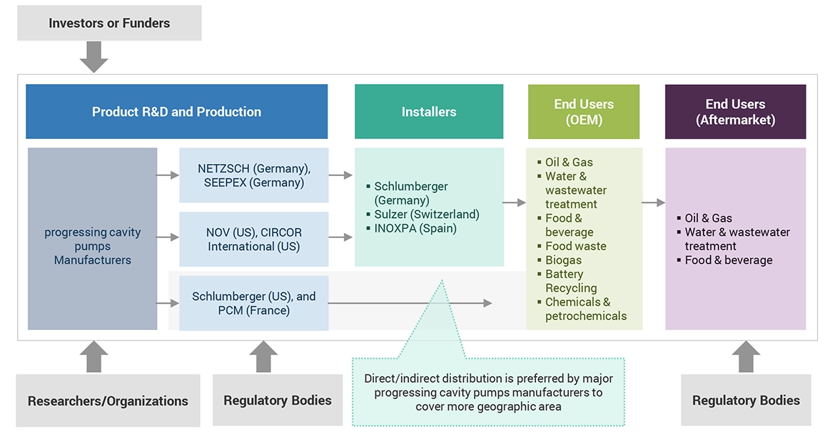 The progressing cavity pump market encompasses numerous stakeholders across its supply chain, including component manufacturers, product manufacturers/assemblers, service providers, distributors, and end-users. Industrial end-users are the primary drivers of market demand, with increasing requirements from transmission and distribution utilities also contributing significantly to market growth. On the supply side, a notable trend is the heightened demand for contracts from the industrial sector, alongside a significant prevalence of mergers and acquisitions among major industry players. To attain a comprehensive understanding of the market, both qualitatively and quantitatively, a diverse array of primary sources from both the supply and demand sides were interviewed. The breakdown provided below delineates the primary respondents who played a pivotal role in offering insights for the research study.