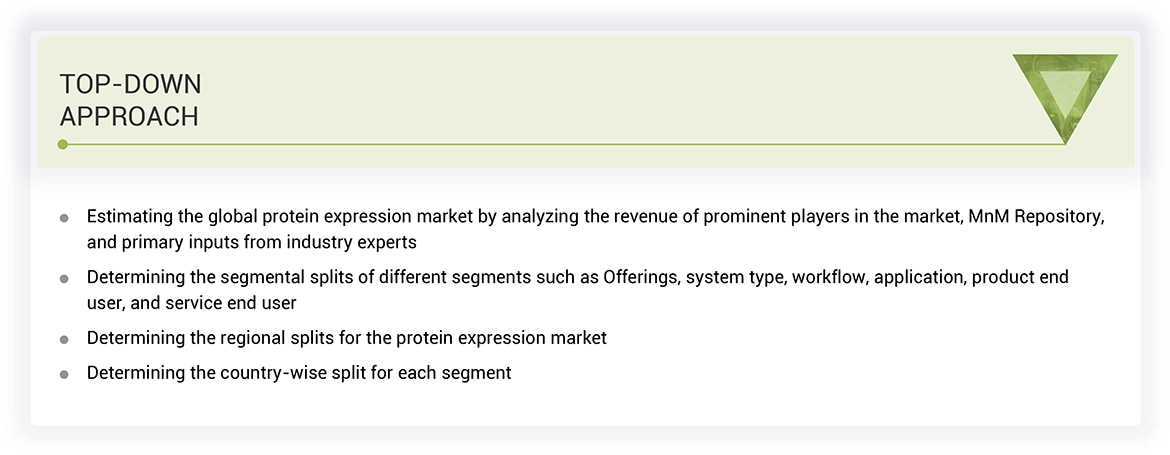 The global size of the protein expression market was estimated and validated through multiple approaches such as the top-down and bottom-up approaches. These methods were also used extensively to estimate the size of various subsegments in the market. The research methodology used to estimate the market size includes the following:
