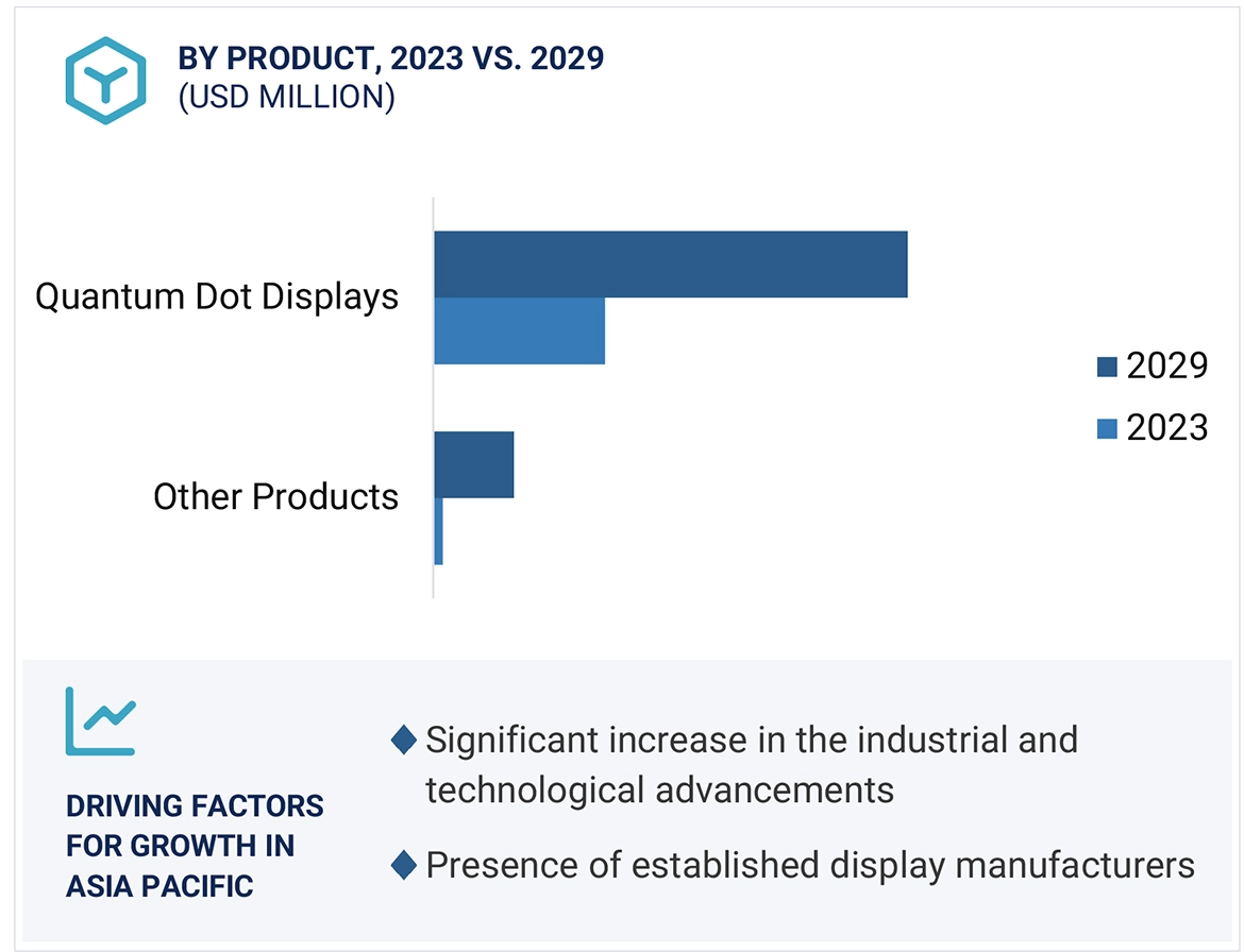 Quantum dots (QDs) are semiconductor nanocrystals ranging in diameter from 2 to 10 nanometers (nm). When exposed to UV light, they emit specific colors determined by their nanoparticle size. Quantum dots are poised to transform display technologies by offering advantages such as high brightness, reliability, cost-effectiveness, and low power consumption. The market for quantum dots is expanding due to rising demand in display devices, their superiority over conventional displays, and their versatile applications across various industries. Manufacturers of quantum dot and related products are presented with numerous growth opportunities, driven by increased adoption in LEDs, escalating demand for large and high-resolution displays, and the expanding utilization of quantum dots in sectors like defense, aerospace, and agriculture.