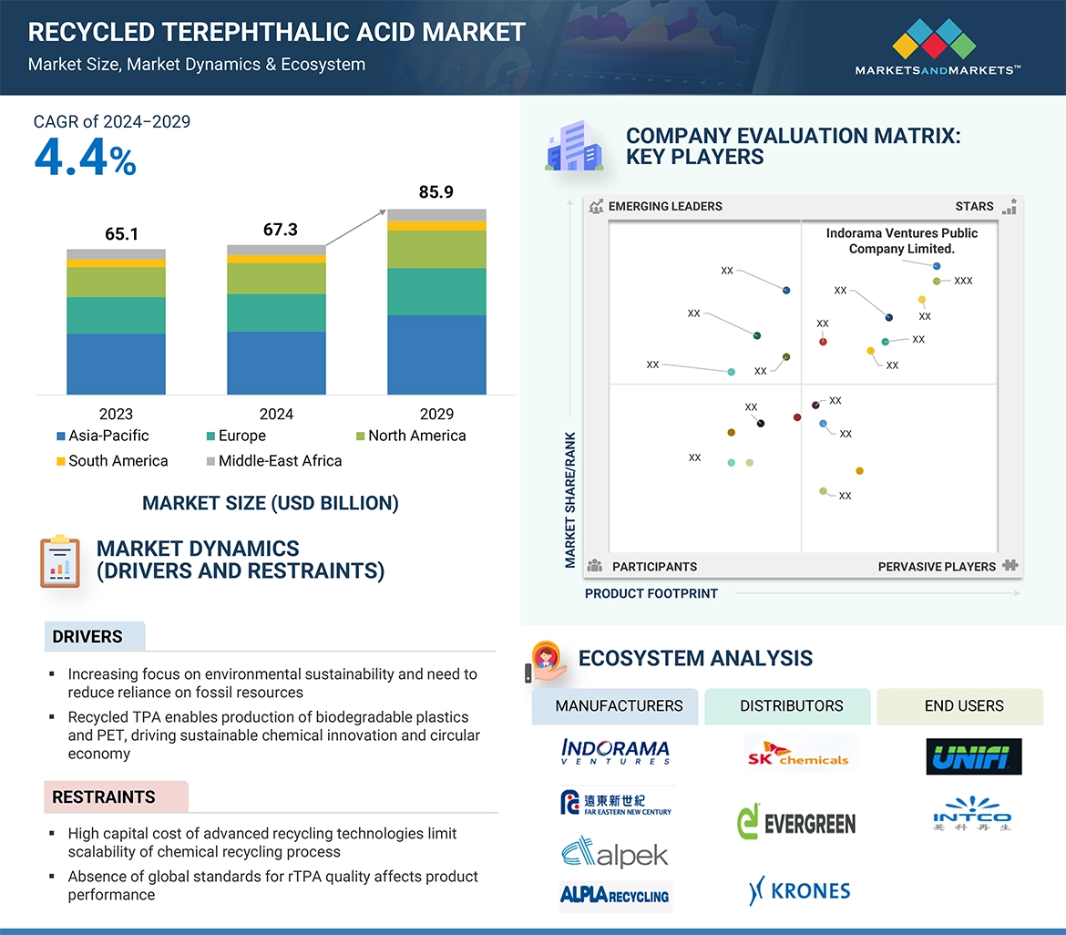 recycled terephthalic acid is a chemical product acquired by chemical decomposition of waste PET, which are either post-consumer or post-industrial with the objective of reduction in plastic wastes and virgin material reliance. The three steps involved are hydrolysis, glycolysis, and methanolysis, that decompose PET into its two primary monomers, ethylene glycol (EG) and terephthalic acid (TPA). Hydrolysis Hydrolysis is preferred because under specific reaction conditions, water with some catalysts operates well in terms of the yield of high purity TPA. Glycolysis Involves the reaction of PET with ethylene glycol, and methanolysis involves methanol. The recycled terephthalic acid is the most important raw material used to produce rPET commonly applied for bottling packaging containers, and other commodities. Some other uses of recycled terephthalic acid include its use in making recycled polyester fibers for clothing, home furnishings, and industrial textiles. Automotive companies employ recycled terephthalic acid in the production of interior components, and also in the fabrication of durable consumer goods such as products from recycled plastics. Recycling process; it will contribute to the circular economy, that promotes sustainability from a reduced environmental footprint and uphold regulations that support recycling and waste management in making this recycled terephthalic acid a central participant in international efforts toward sustainability on a multicon-textual level that cuts across varied industries.