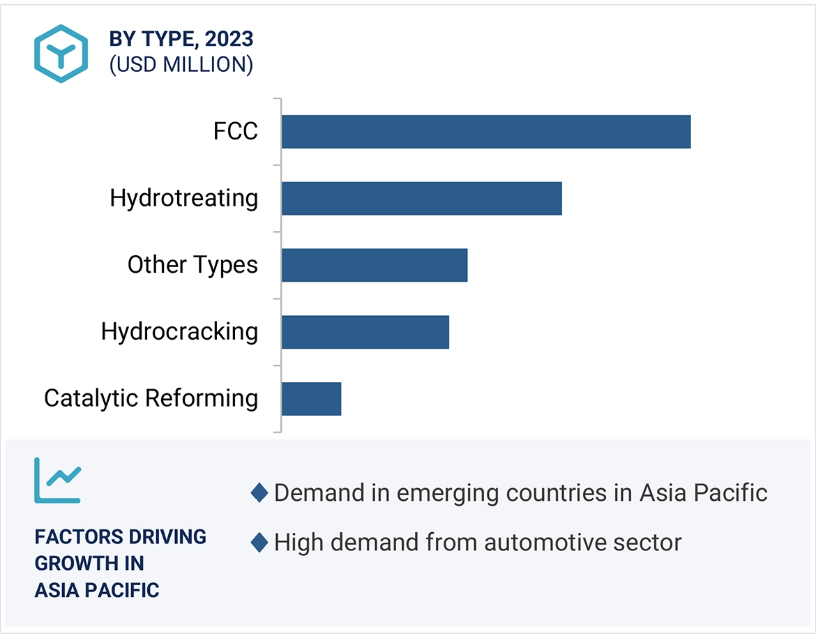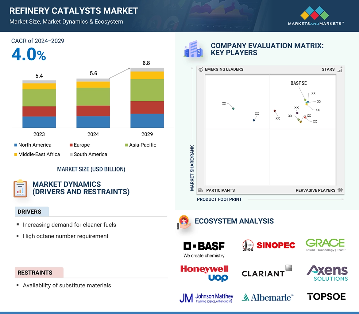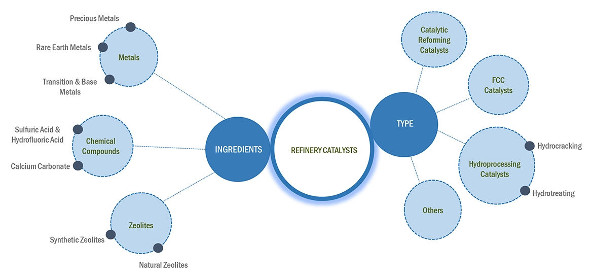 Refinery catalysts are substances used in various refining processes for increasing the efficiency, quality and environmental performance of petroleum products. These catalysts speed up the chemical reactions to increase the efficiency and quickness of oil refining. Thus, ensuring higher productivity and lower energy consumption. Different refining processes like cracking, reforming and hydrotreating are performed with the use of these catalysts for getting desired results, along with reducing emissions & pollutants. Increasing number of environment regulations also ensures the use of refinery catalysts in refining processes. Advanced materials and methodologies are being developed to increase the durability, activity, and selectivity of refinery catalysts.