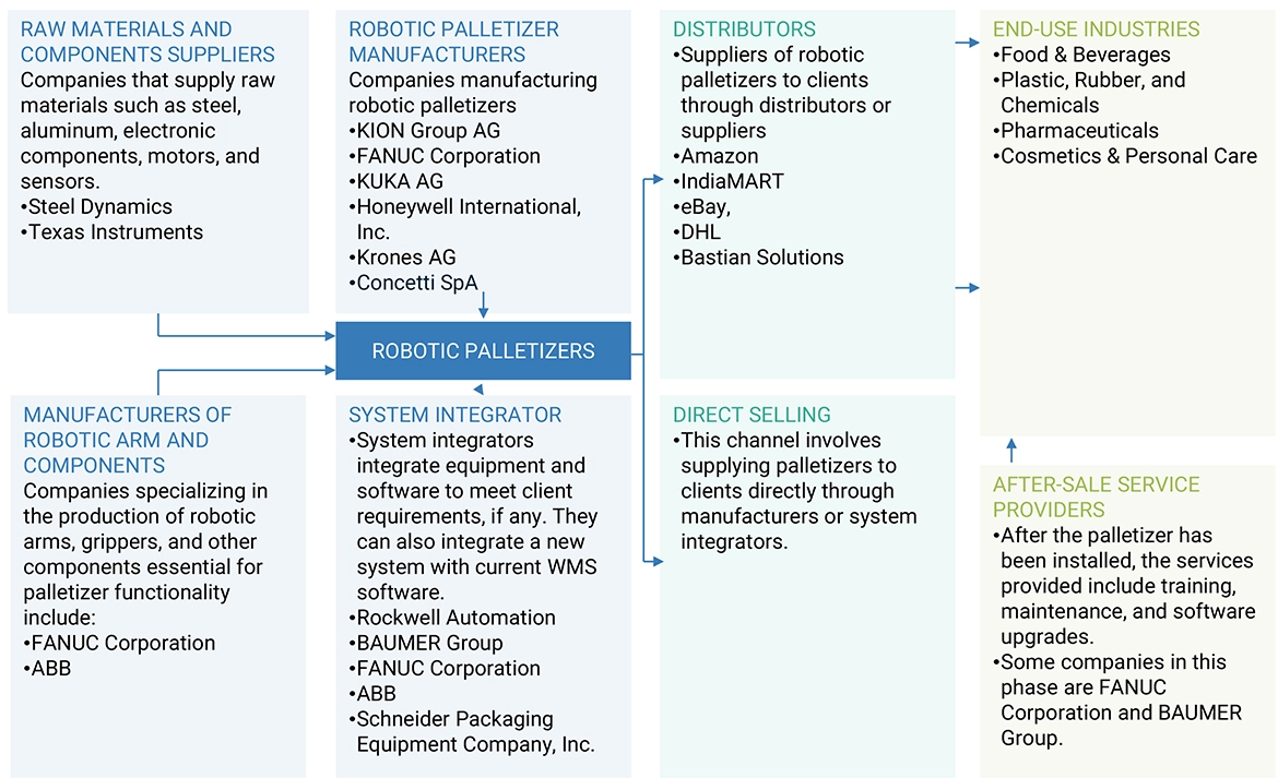 To provide a detailed overview of the supply chain and ecosystem pertaining to the robotic palletizer market, along with the average selling prices of components of the robotic palletizer market.
